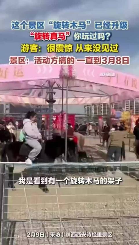 有游客在西安一处景点内看到名为旋转真马的体验项目,现场六匹真马被绑在装置上持续绕圈,引发不少人担忧动物是否会受到不当对待。