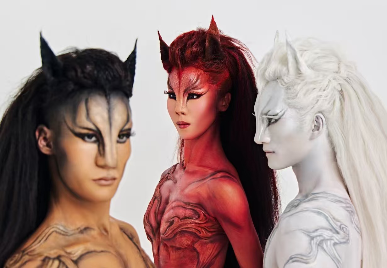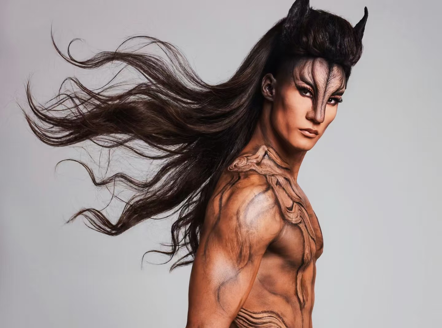 节目最受关注的当属极具冲击力的造型设计。为了还原神驹的神韵,舞者的妆造做了大胆突破,通过面部阴影拉长脸型,配合利落的鼻线和清晰的肌肉线条,远看就像从古籍里走出来的神兽。不少网友第一眼看到,都觉得有种 “阿凡达” 的既视感,但凑近看就会发现满满的东方细节:马首头冠融入了古朴的青铜纹饰,服饰上还点缀着甲骨文 “马” 字的刺绣,传统非遗元素与现代仿生美学结合得恰到好处。