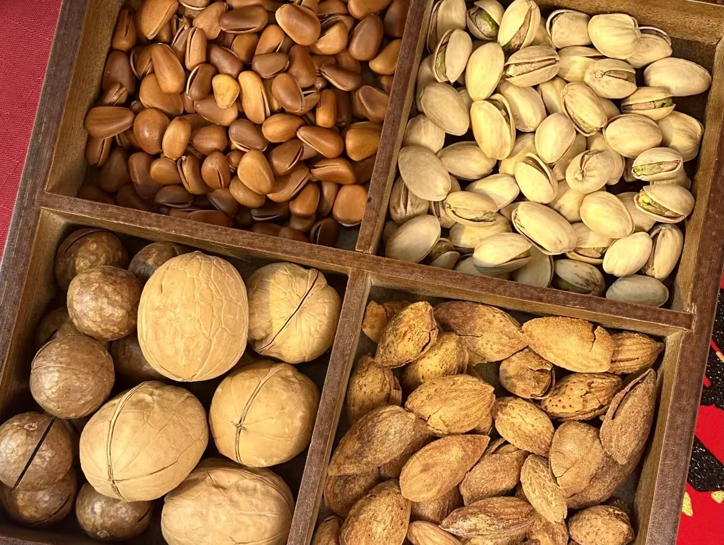 除了控量,吃坚果还有几个小细节,大家也得注意。首先,尽量选原味的,别买盐焗、糖渍、油炸的,这些坚果加了大量盐、糖和油,不仅更易长胖,还会破坏本身的营养;其次,吃的时间也有讲究,上午10点或下午3、4点当加餐最合适,别在晚上吃完饭后再吃,容易堆脂肪;最后,不同的人吃法也不一样,老人消化弱,可少吃点质地软的坚果;孕妇和小孩吃的时候,一定要注意别呛到,分量也得减一减。