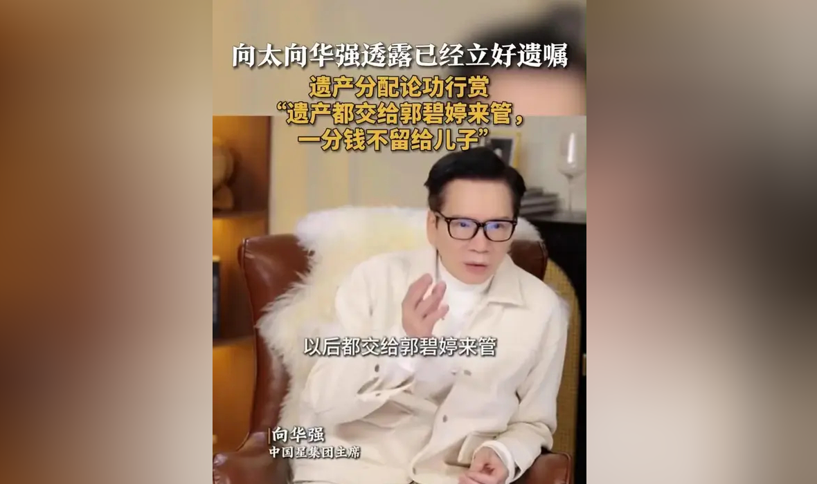 2月25日,向华强在视频中回应外界关注的遗产安排,并提到小儿子向佑。他表示自己与向太已达成一致,未来的财产将统一交给郭碧婷管理,不会留给儿子任何部分。