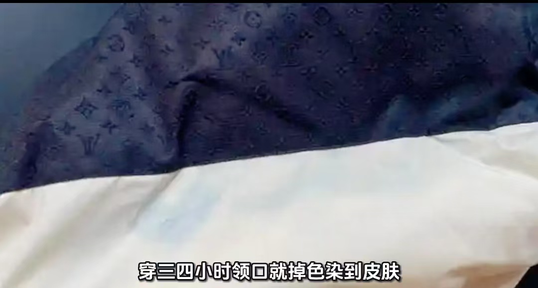 据石女士说,她在当地商场的LV门店,斥巨资买了一件新羽绒服,本来挺开心的,结果穿出去没一会儿,身体一出汗,领口那里就被汗液浸湿了。没想到,汗液一沾,羽绒服居然直接掉色,不仅衣服本身变得斑驳,还把里面穿的内搭也给染脏了。