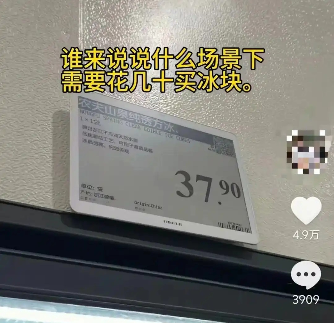 还有网友表示,冰块的作用不就是降温吗?普通冰块完全能满足日常需求,山姆这款只不过是工艺和包装好一点,就标这么高的价格,说白了就是品牌溢价和营销噱头。“37.9元能买好几箱矿泉水,甚至三杯奶茶,买一袋会融化的冰块,太不划算,普通家庭根本没必要凑这个热闹。”有网友吐槽道。