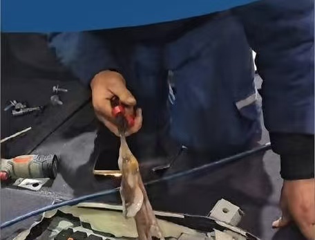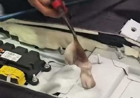 拆扶手盒的时候,车主的心一直悬着,既想找到八爪鱼,又怕看到不好的结果。果然,随着扶手盒被慢慢拆开,一股浓烈到刺鼻的腐臭味瞬间涌了出来,差点把维修师傅熏吐,师傅赶紧戴上口罩,车主也被熏得捂住鼻子干呕。