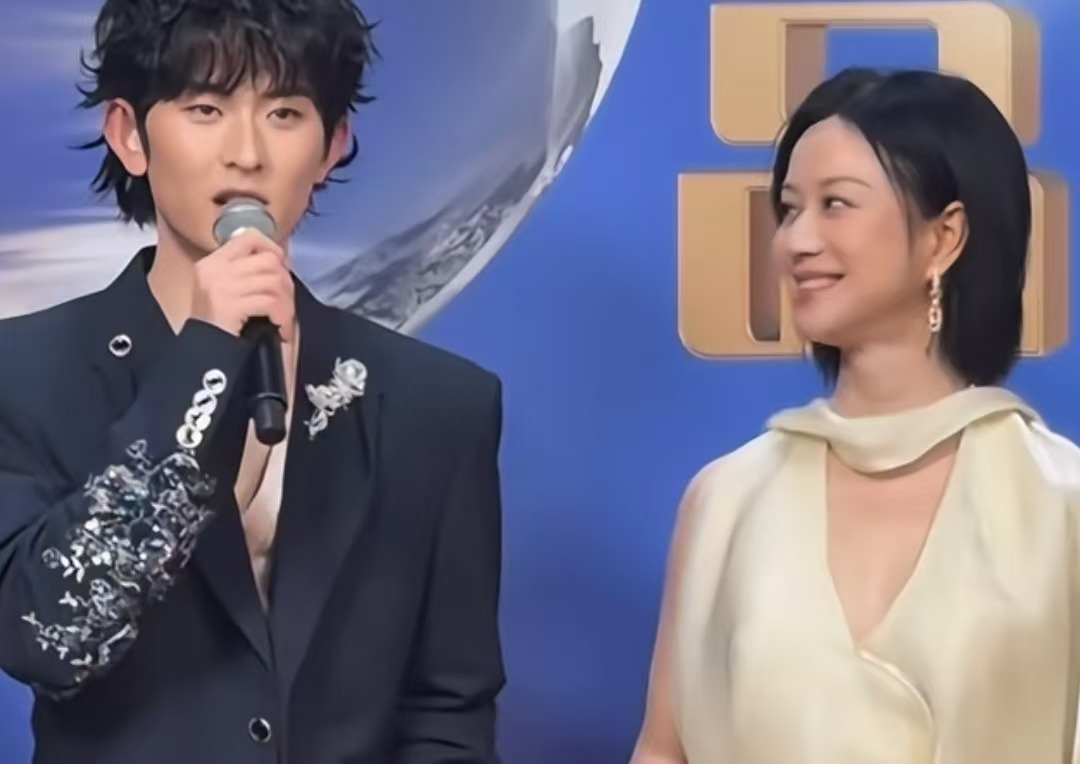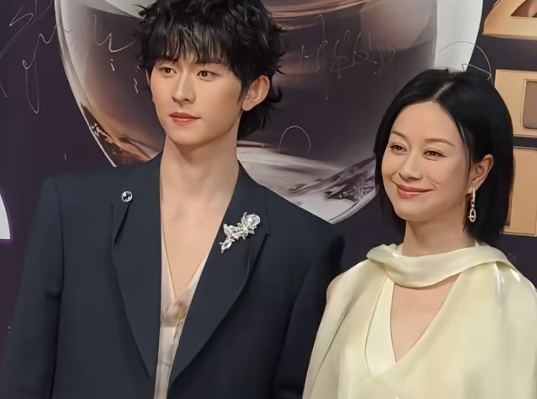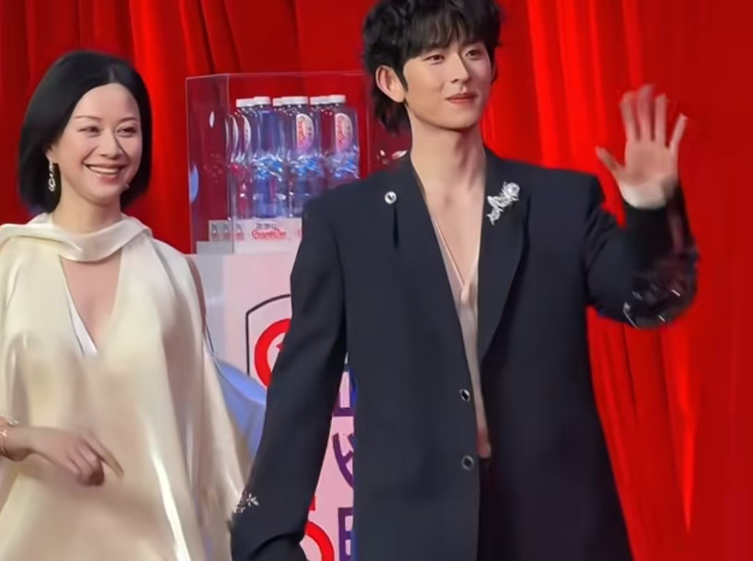 当天傍晚,红毯现场灯光璀璨,随着观众的欢呼声,陈添祥和倪虹洁并肩走来。陈添祥留着清爽的小卷毛,穿了一件V领西装,少年感拉满,还带着点儒雅气质,粉丝都亲切叫他“卷毛小王子”;旁边的倪虹洁则穿了一身优雅礼服,身姿温婉,气场十足,就算高清镜头近距离拍摄,也挡不住她的独特魅力,把中年女性的韵味展现得刚刚好。