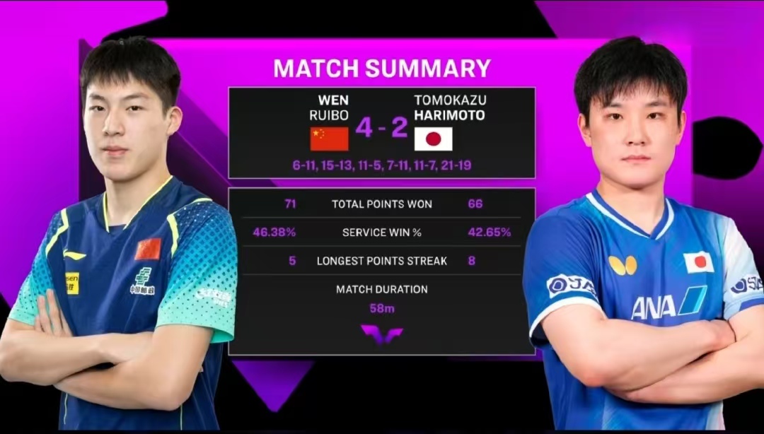 这场比赛是两人成年组国际赛场的首次碰面,赛前就备受关注。温瑞博目前世界排名第27位,这次是持外卡参赛,却一路逆袭,先后击败了世界第二莫雷加德、欧洲冠军邱党等顶尖选手,堪称本站赛事的最大黑马;而张本智和世界排名第4,是日本男乒的核心主力,靠着凶狠的前三板和犀利的反手,一路过关斩将,实力不容小觑。