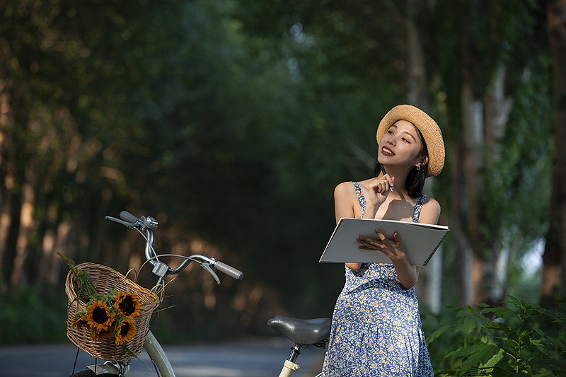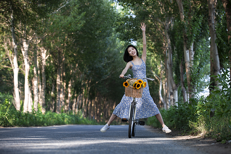 林荫小路在阳光中延展,车轮轻轻滚动,花篮里的向日葵始终朝着明亮的方向。停下来记录灵感,继续向前感受风的速度,举手、回望、前行,都是生活中再普通却充满力量的瞬间。这组画面把日常过成一种积极的姿态——在自然里汲取能量,在行走中找回节奏。哪怕只是短短一段路,也能让心变得开阔,让每一天都多一点向上的光。