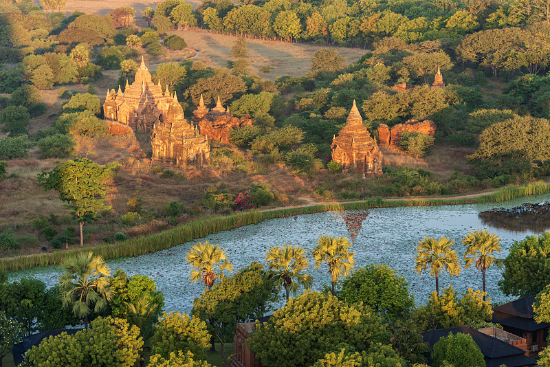 蒲甘的佛塔从不孤独,它们藏在绿意里,与自然共生出最治愈的风景。