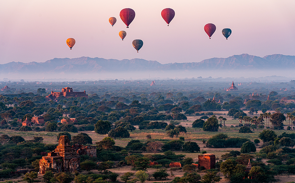 蒲甘的清晨,是热气球与万塔共同谱写的视觉史诗,让人一眼沦陷。