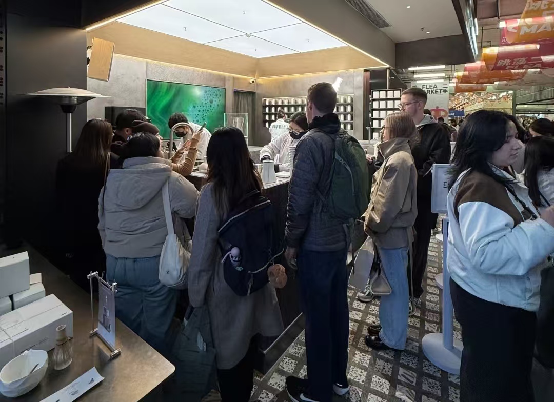 没有花哨的营销套路,靠着可爱的造型、扎实的口感,一杯普通的抹茶拿铁,就能跨越语言和文化的界限,让中外食客齐聚街头,这份简单的美好,也让这条老街多了几分热闹与温情。