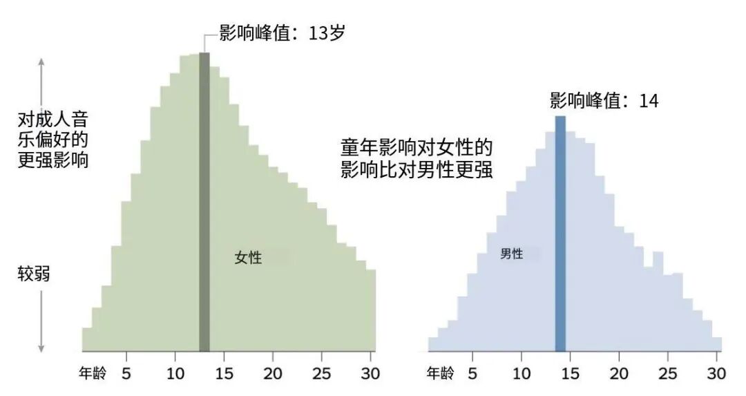 有数据科学研究梳理了1960年至2000年间的听歌排行榜后发现,人们的音乐偏好往往在11岁到16岁之间逐渐成形。到了24岁之后,主动探索新音乐的意愿明显下降,而30岁以后,整体音乐品味基本稳定,很难再发生大的变化。