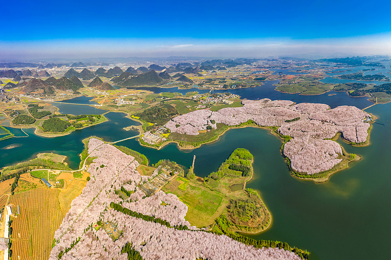 图片来源:视觉中国# 平坝樱花全景 #环湖樱花 #东方山水 #治愈风景 #中国最大樱花海