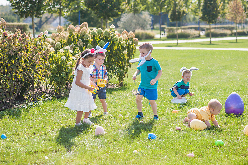 寻蛋游戏(Egg Hunt):大人会把彩蛋藏在花园、草地或房间里,孩子们提着篮子寻找彩蛋,找到最多的人会获得小奖励,是最受欢迎的亲子活动。