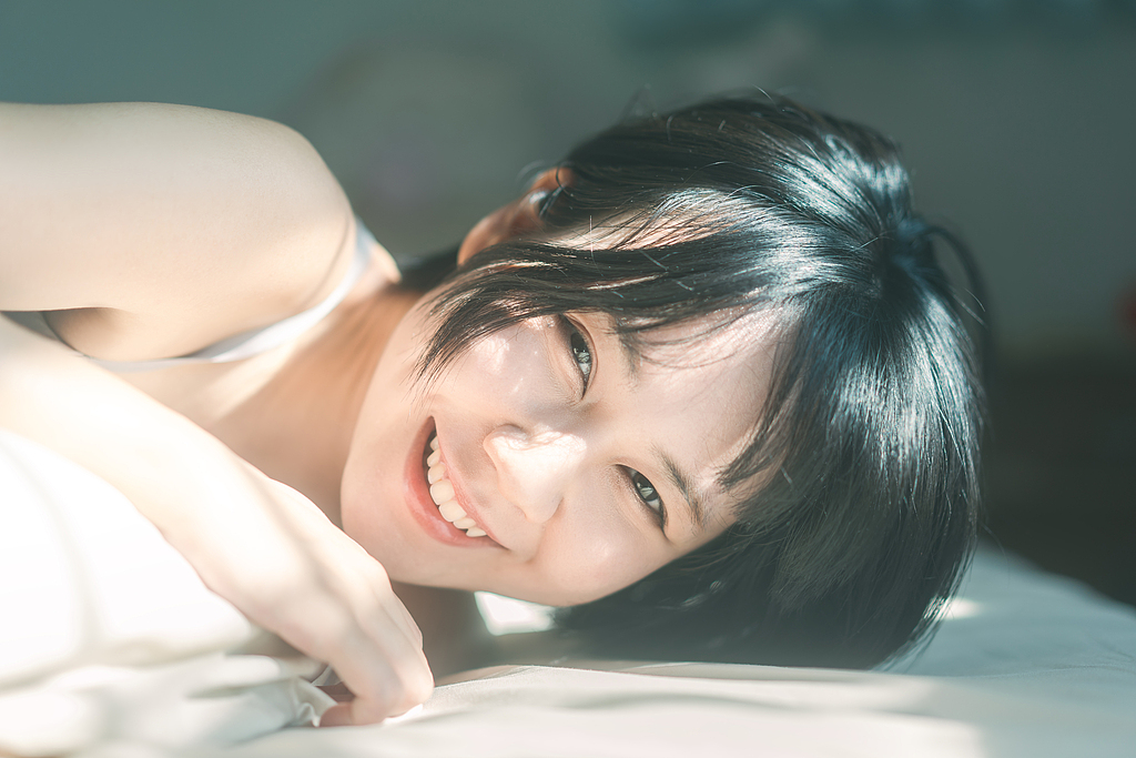 图片来源:视觉中国# 慵懒感 #居家写真 #温柔系 #短发少女