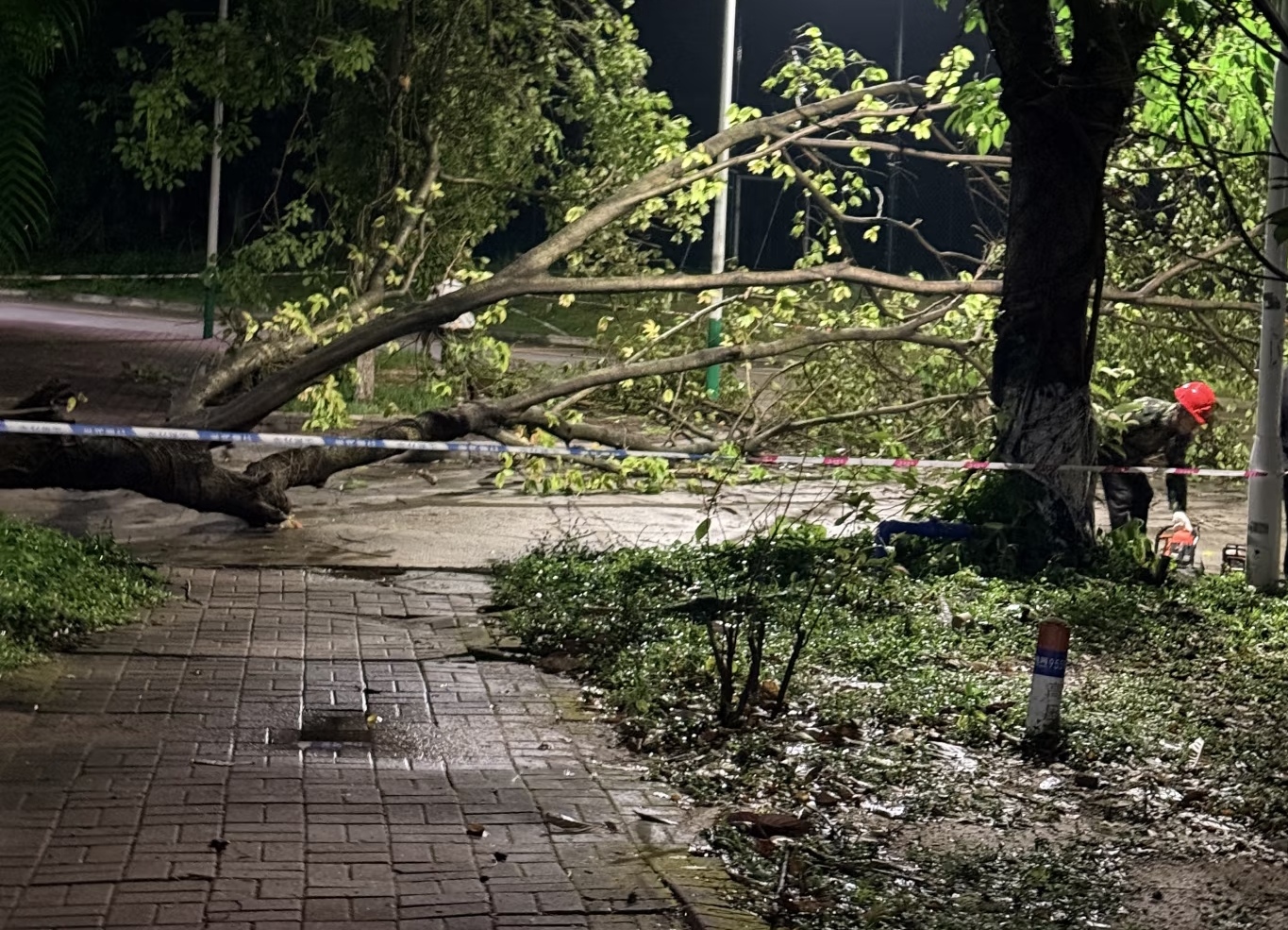这场天气来得毫无征兆,3月29日下午,原本还好好的晴天,突然就被黑压压的乌云完全遮住,大白天瞬间变成了“黑夜”。紧接着,豆大的雨点就伴着刺耳的雷声砸了下来,风也越刮越大,部分地方甚至出现了11级阵风,路边的大树被拦腰吹断,广告牌摇摇晃晃随时可能掉下来,一些低矮房子的屋顶也被吹得损坏了。