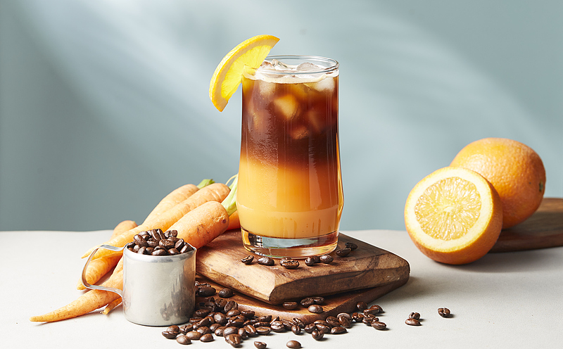橙子的明亮与胡萝卜的清甜,给咖啡注入了鲜活的生命力。分层的暖黄与深褐,像把秋日的阳光都装进杯里,一口下去是清爽又充满活力的惊喜。