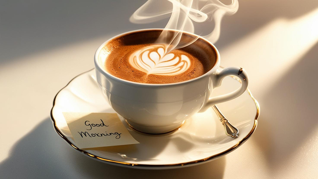 清晨的阳光里,一杯带着奶泡拉花的热咖啡,是写给世界的温柔早安。蒸汽袅袅升起,把疲惫与喧嚣都揉进这一口暖香里,新的一天就此温柔开启。