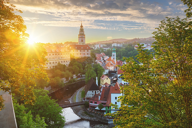 捷克克鲁姆洛夫的清晨,阳光穿透林叶洒向古堡,伏尔塔瓦河蜿蜒流过红屋顶小镇,每一帧都是 CK 小镇独有的治愈晨光🌞