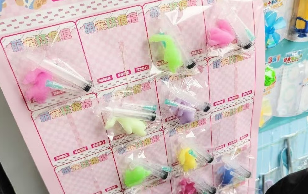 相信很多家长都见过,学校门口的小卖部、文具店,甚至是流动摊贩上,摆满了各种花哨又便宜的网红玩具。“水宝宝”“捏捏乐”“水晶泥”“炸包”“激光笔”,还有最近出现的“火龙”小宠物,这些都是孩子们特别喜欢买的东西,但很少有人知道,这些玩具大多是“三无产品”——没有生产日期、没有生产厂家、没有质量合格证,连最基本的安全认证都没有。