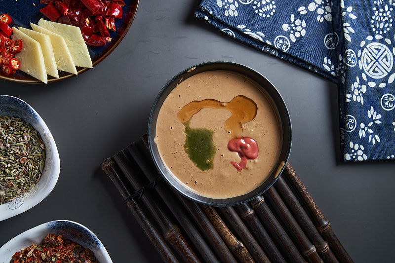 北方人的灵魂蘸料,非麻酱莫属。从北京涮肉到天津面茶,从东北火锅到山东麻汁,醇厚香浓是不变底色。麻酱既能中和牛羊肉膻味,又能裹住蔬菜脆嫩,是北方餐桌最踏实的安全感。