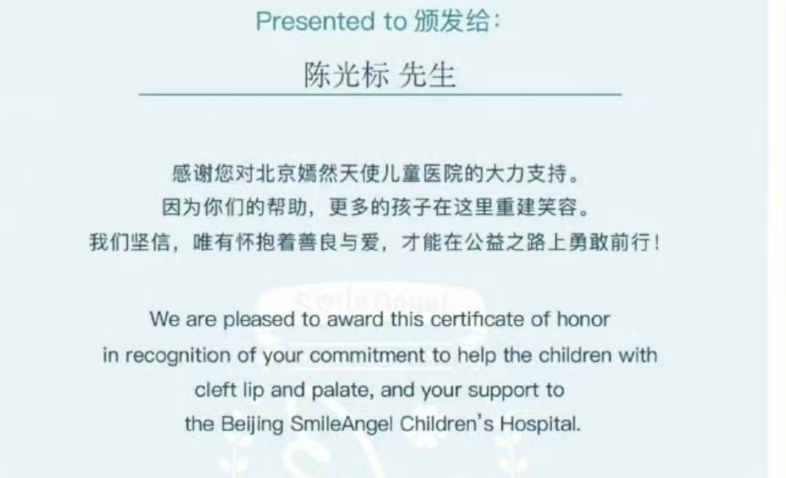 据悉,嫣然天使儿童医院自成立以来,就一直专注于唇腭裂患儿的救助工作,多年来帮助无数患有唇腭裂的孩子完成手术、重建笑容,恢复健康,也得到了社会各界的广泛认可和支持。这次收到陈光标捐赠的1000万元善款,无疑会给医院的救助工作和建设发展注入强大的动力,不仅能帮助更多唇腭裂患儿获得及时的医疗救助,还能进一步完善医院的医疗设施、提升医疗服务水平,让更多有需要的孩子受益。