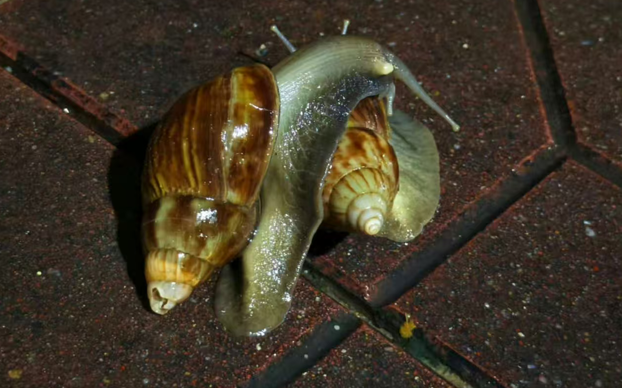 可能有人会问,为啥暴雨后这种蜗牛就变多了?其实很简单,非洲大蜗牛不能在水里存活,连场暴雨把它们藏身处的积水都灌满了,为了不被淹死,它们只能爬出来,找干燥的地方躲着,这才会频繁出现在大家眼前。
