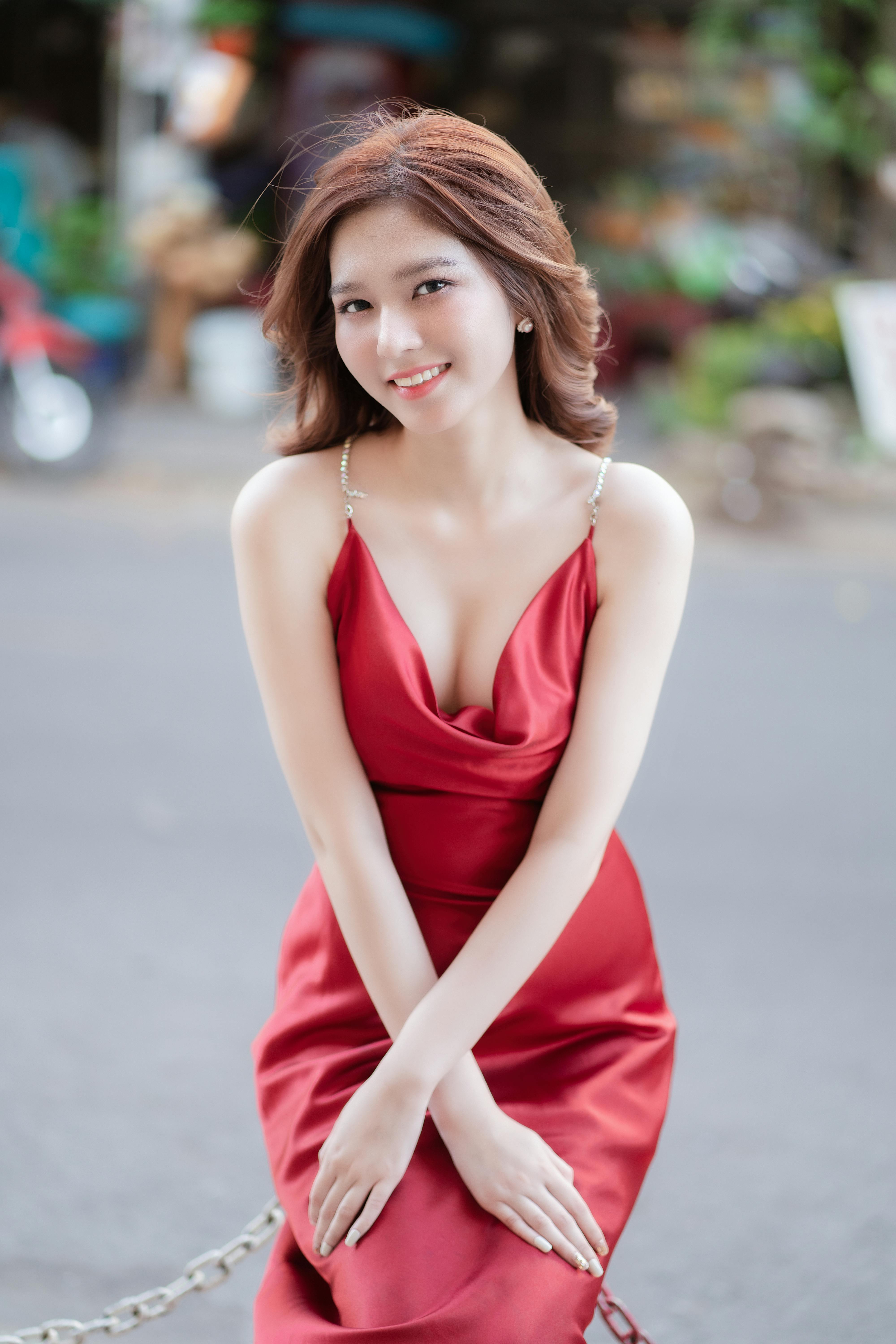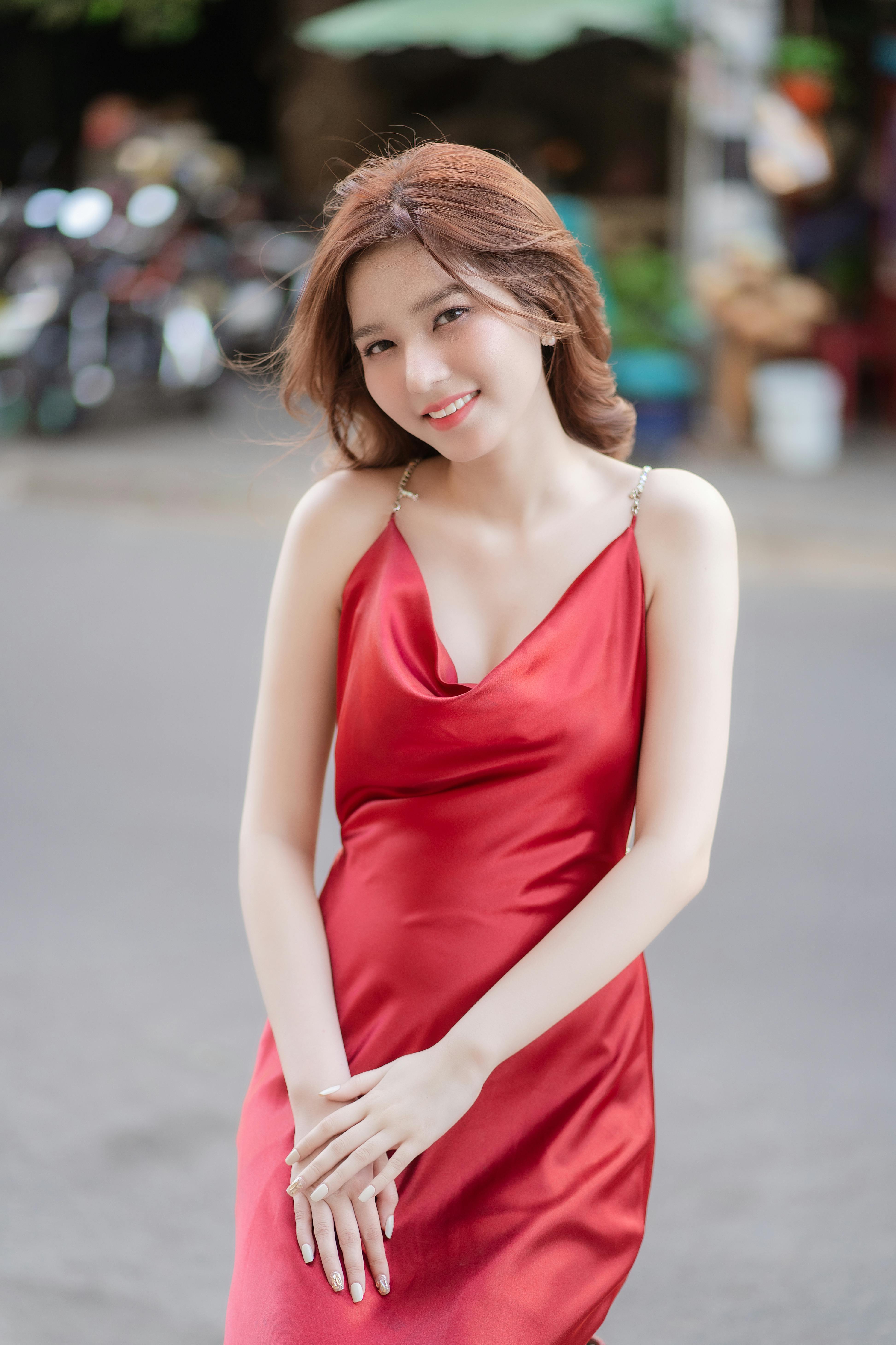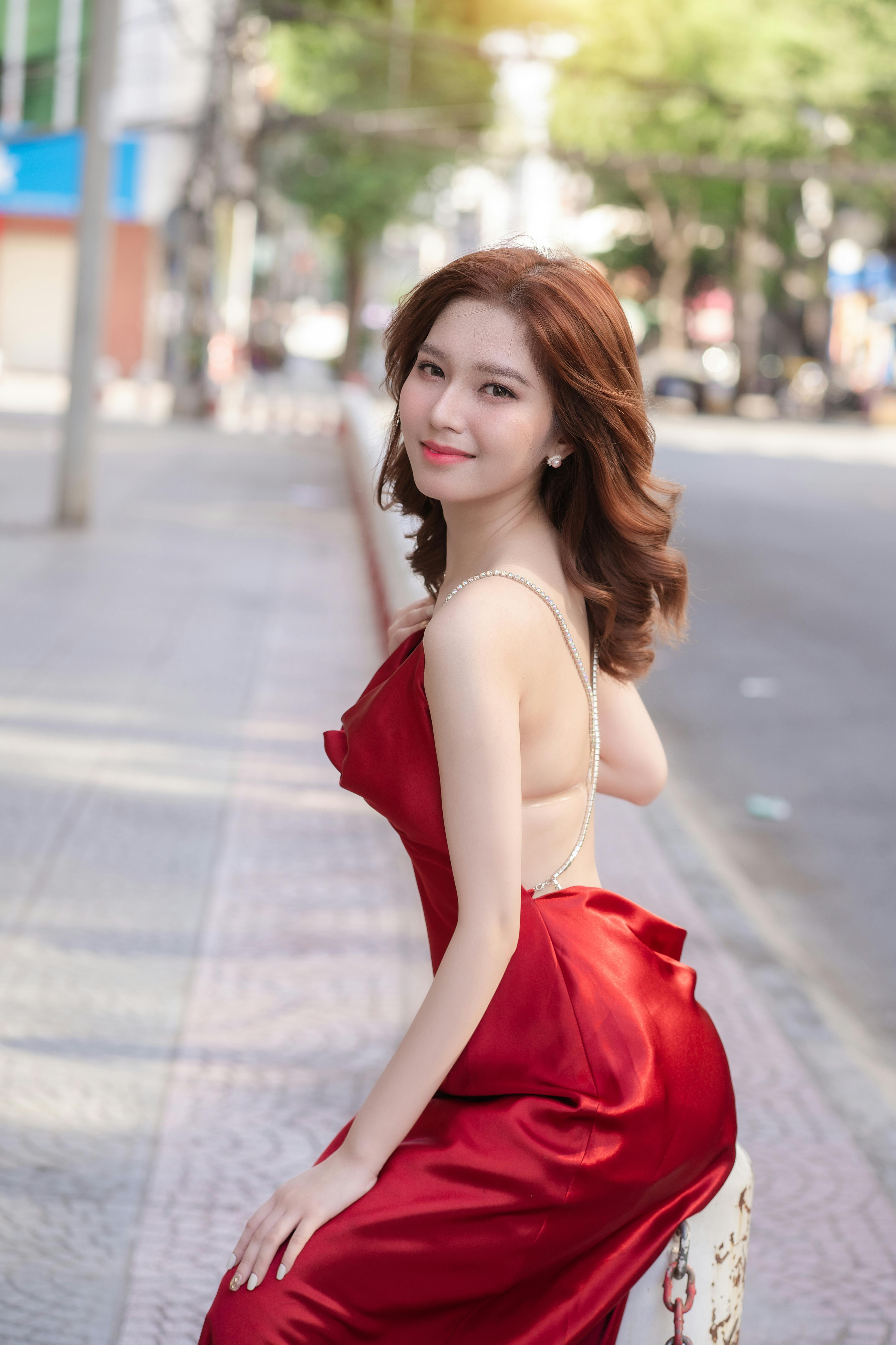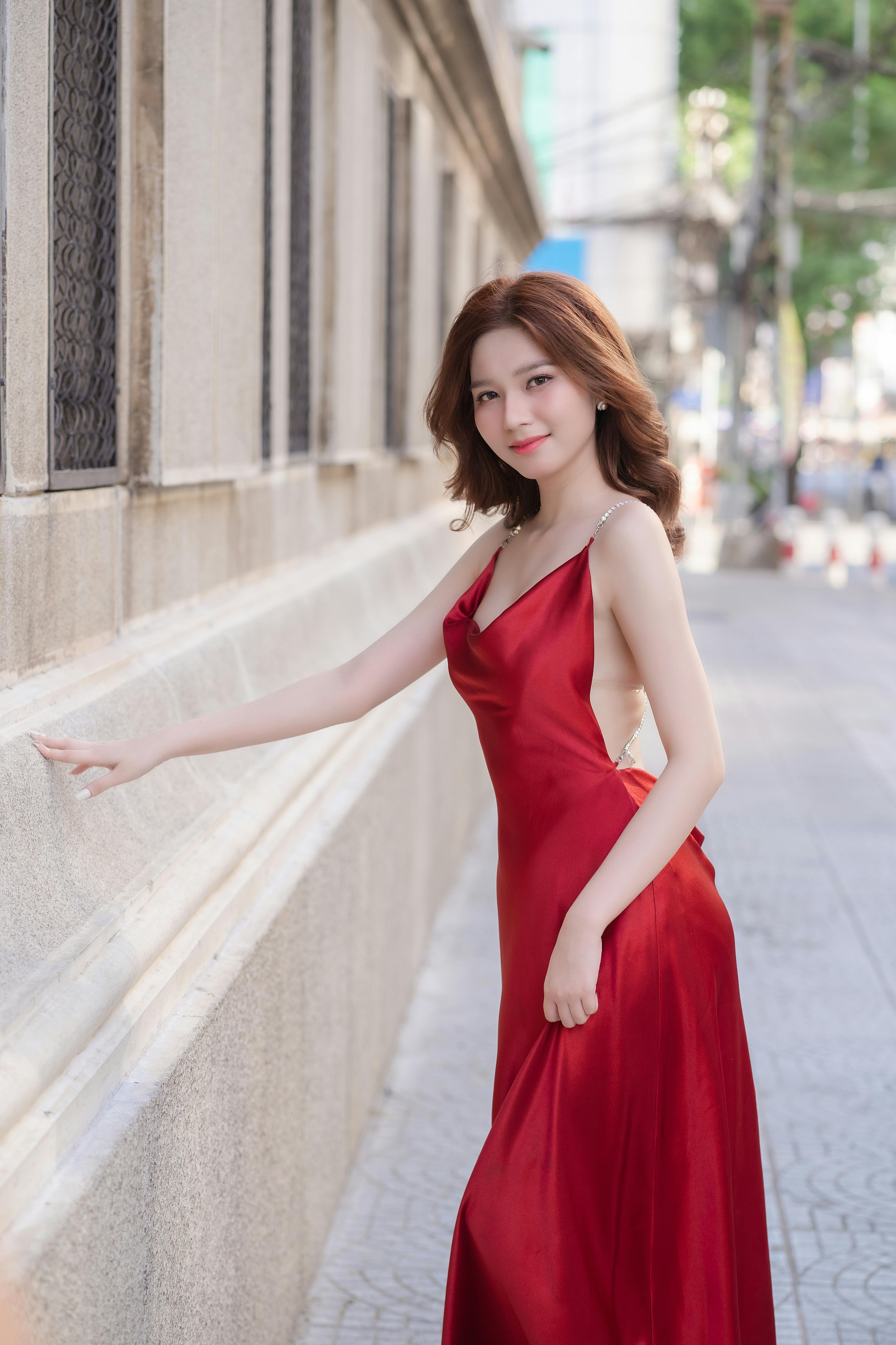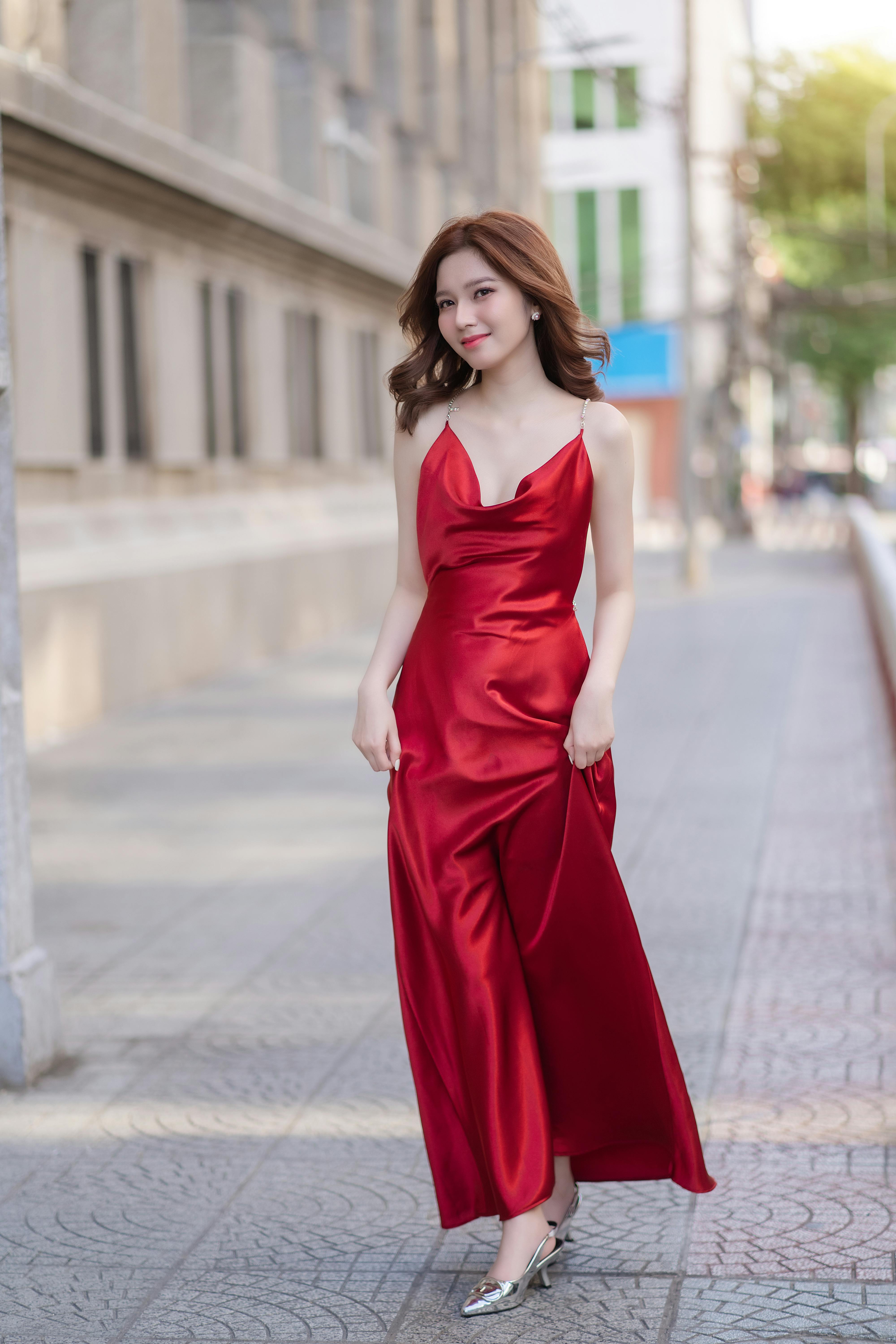 把红裙的明艳与女性的柔美,展现得淋漓尽致。