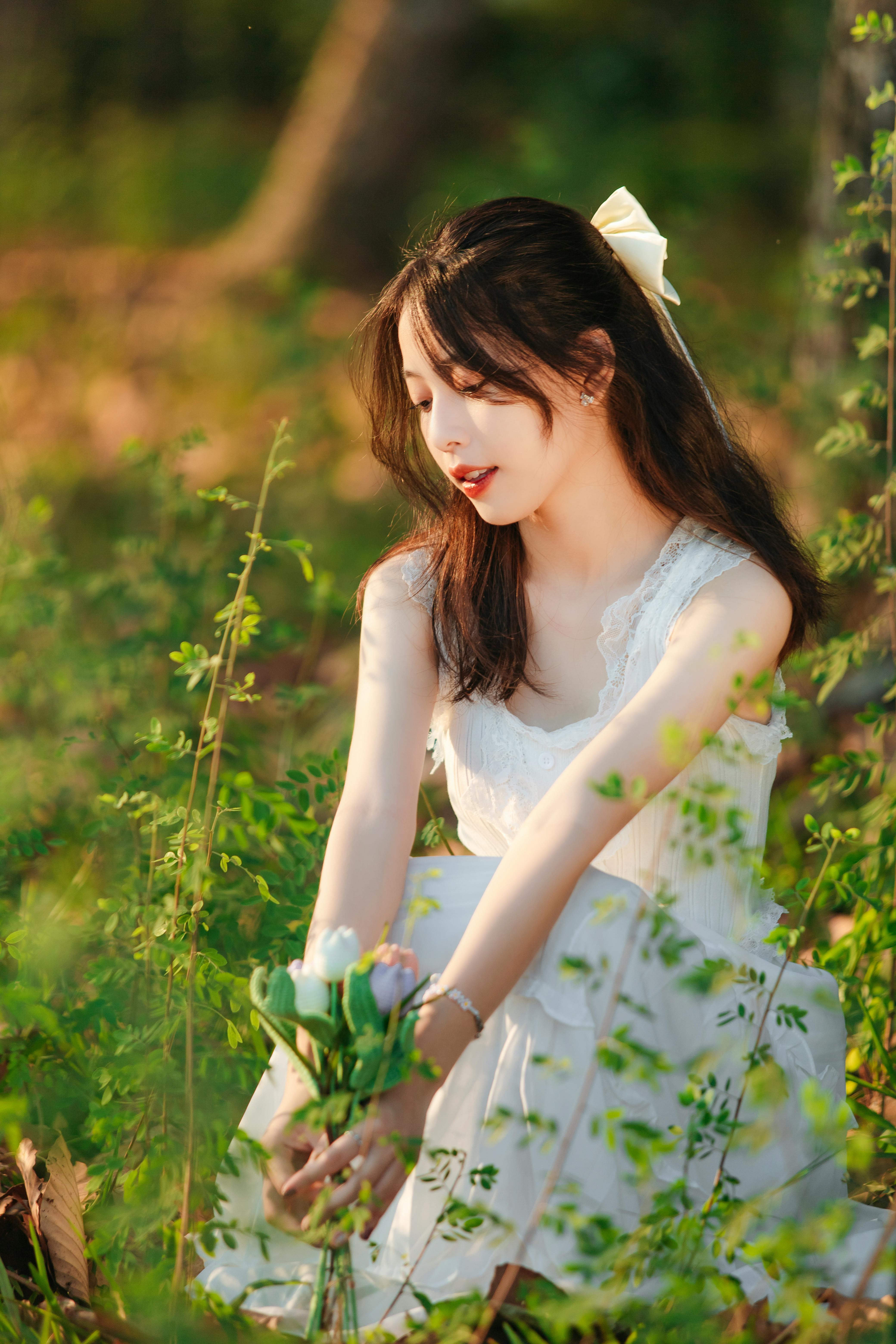 林间光影斑驳,把少女的灵动与温柔,定格成永恒的画面。