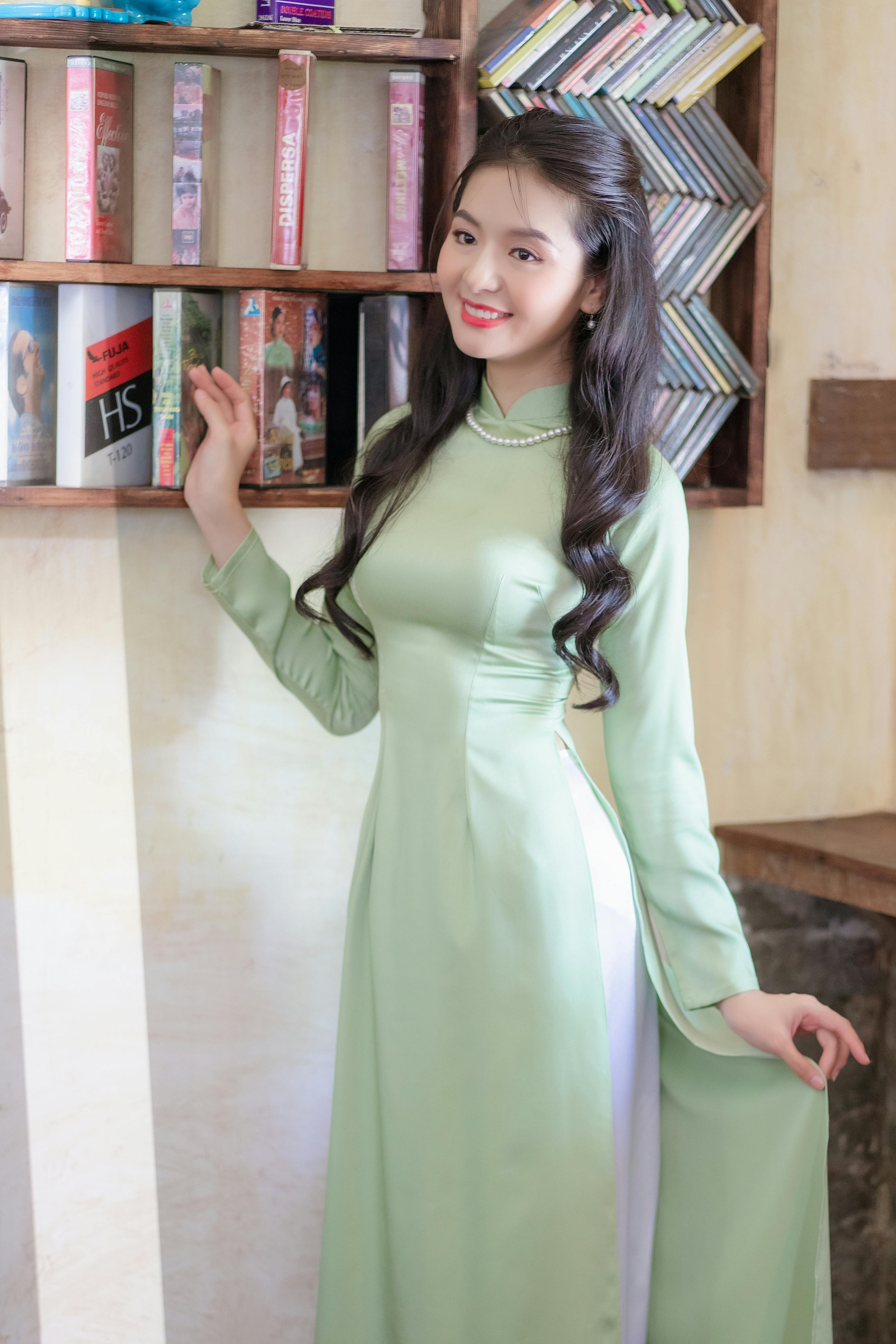温润的薄荷绿、珍珠配饰、草编包,还有复古书架、五彩门帘、暖光旧建筑,把南洋复古的浪漫与东方少女的温柔,完美融进镜头里。