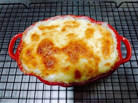 注意:务必密切留意焗烤,因为不同烤箱上火的强度差异较大,焗烤很容易在短时间内烤焦。