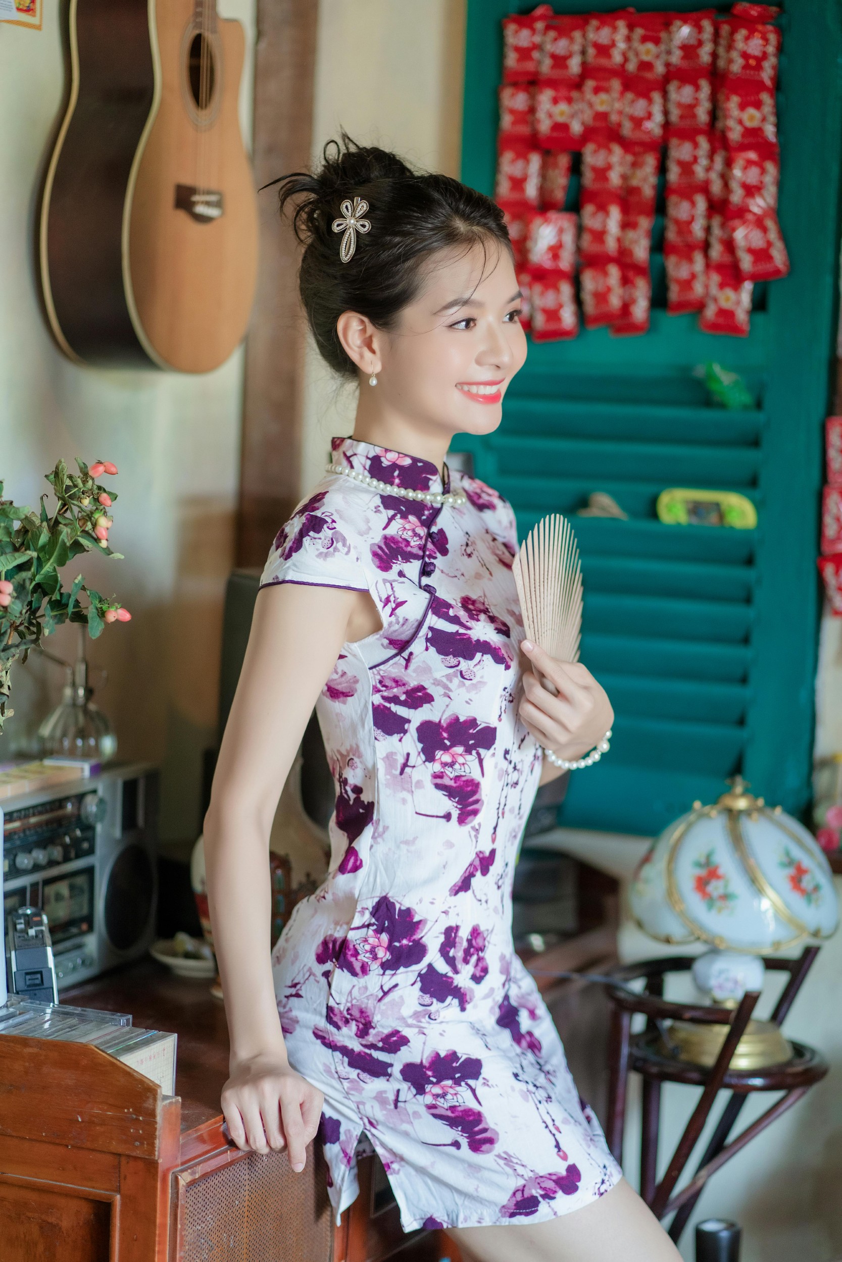 吉他、红灯笼、复古台灯,每一处细节都拉满怀旧氛围,旗袍的甜与酷完美平衡。