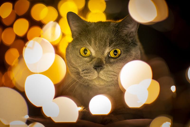 灰蓝绒毛被柔光晕染出温柔轮廓,眼神沉静又神秘,像从童话里走出的暗夜精灵。