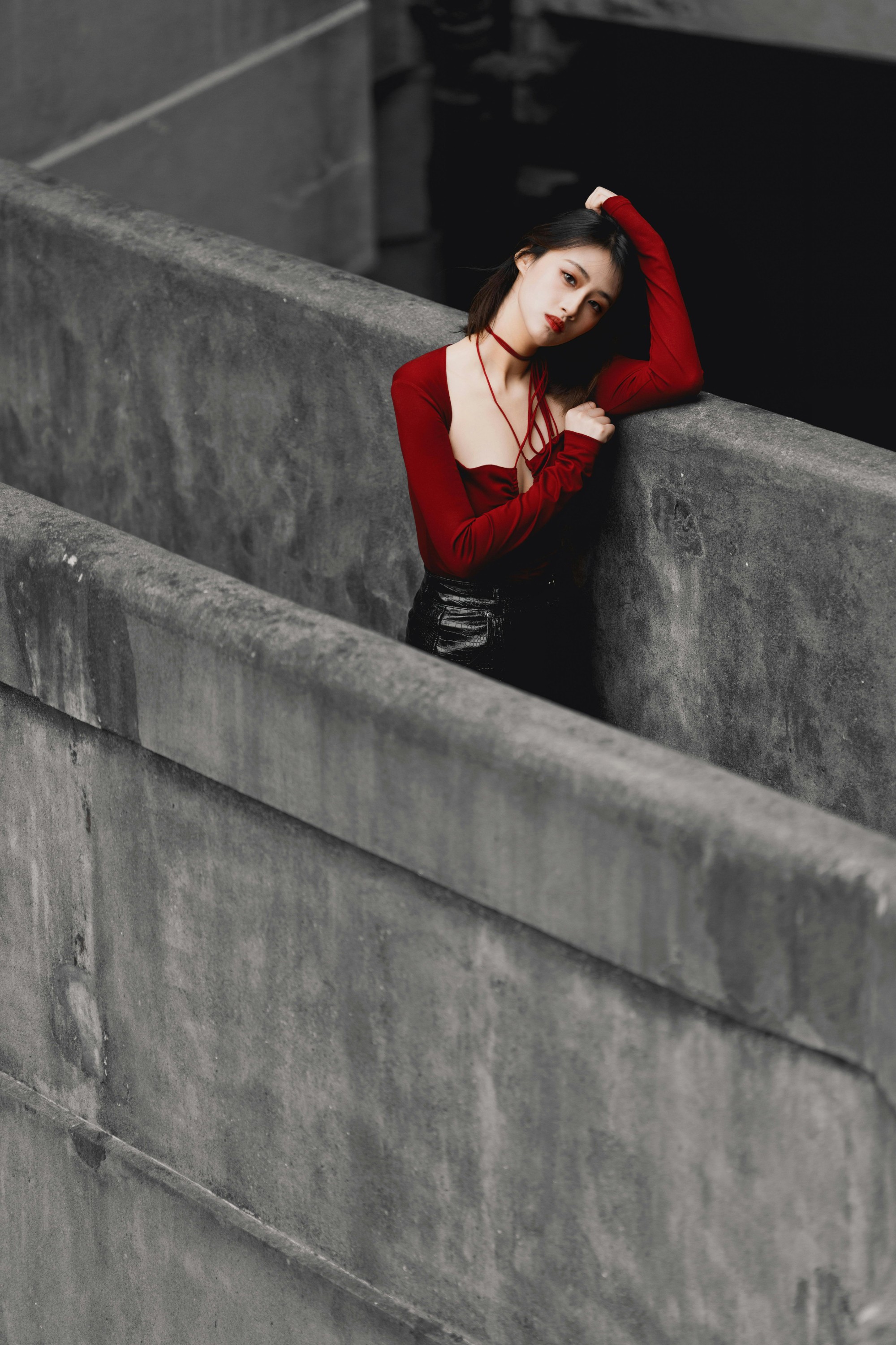 红与黑的极致碰撞,冷与热的完美交融,把工业风写真的高级感,狠狠拿捏住了。