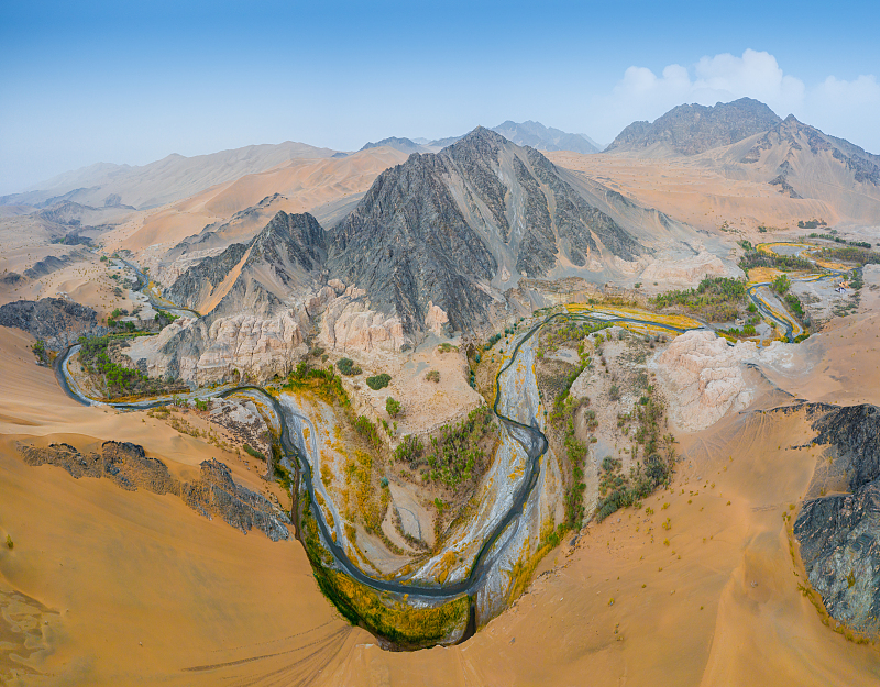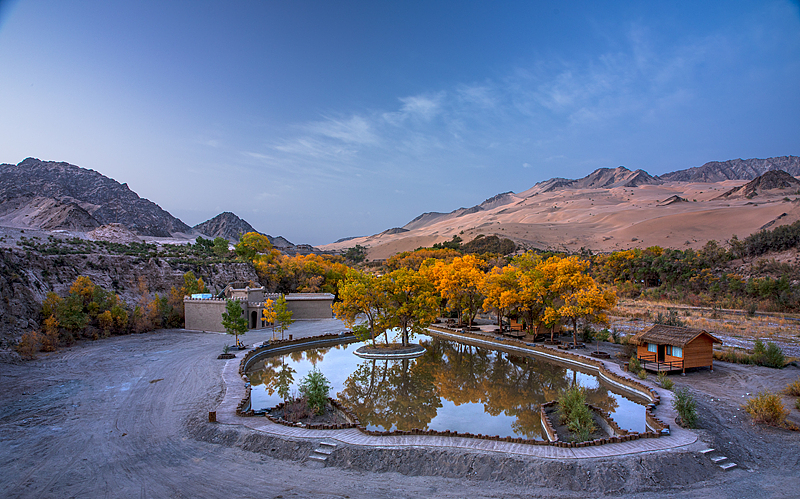 7 公里,两侧沙山险峻、岩壁呈灰黑色 “黑独山” 质感。祁连山雪水溪流贯穿谷底,两岸千年野生胡杨茂密生长。秋季胡杨金黄,与沙山、碧水、红柳交织,是荒漠中的奇幻画廊。