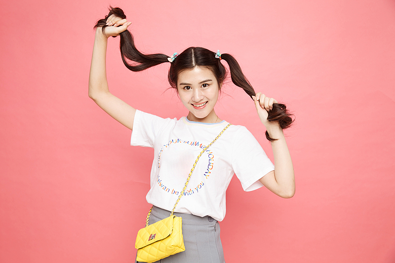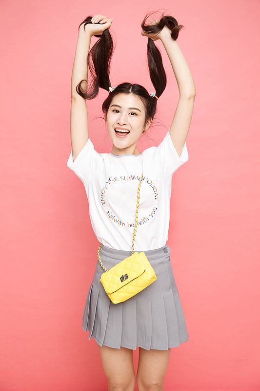 白 T 百褶裙的清新,蓝 T 红短裤的活力,