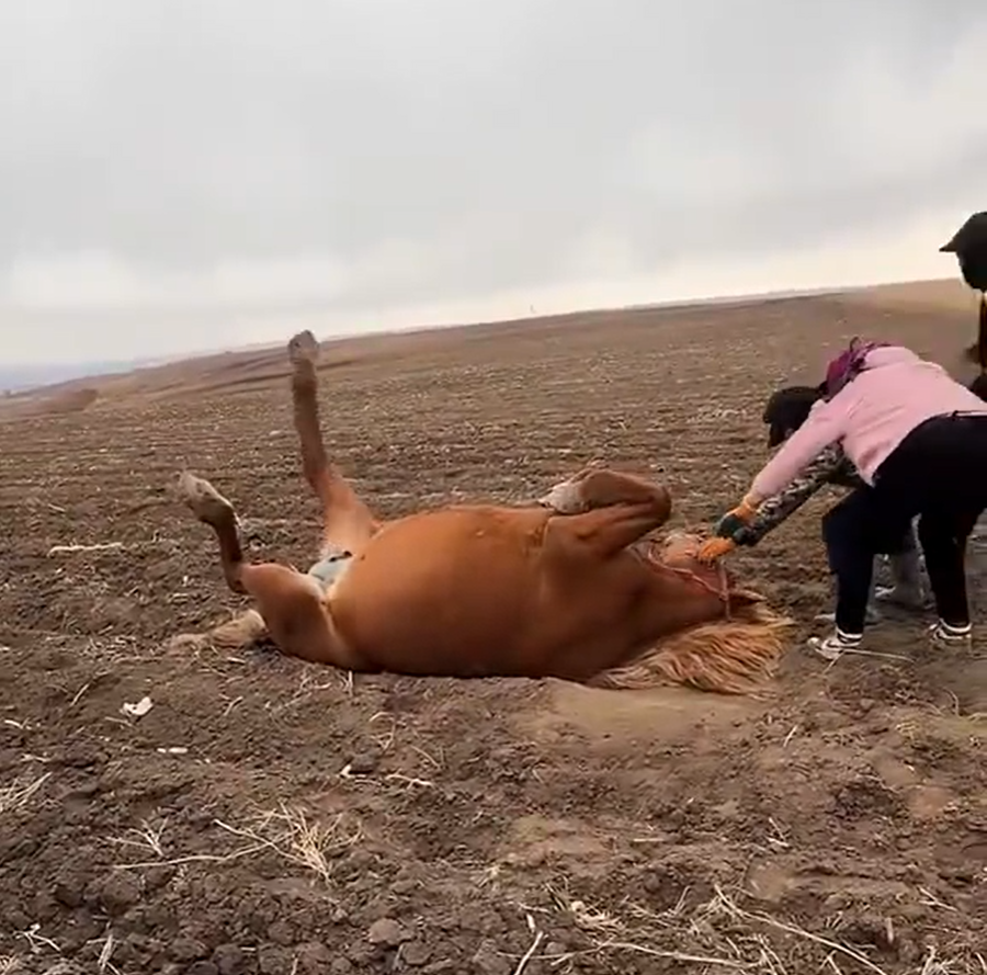 近日,在内蒙古某地发生了一起暖心的救助事件。一匹马在活动过程中不慎跌入地垄,由于地形狭窄、身体受限,马匹侧躺在地垄中无法自行翻身,多次挣扎后仍然动弹不得,情况一度十分危险。