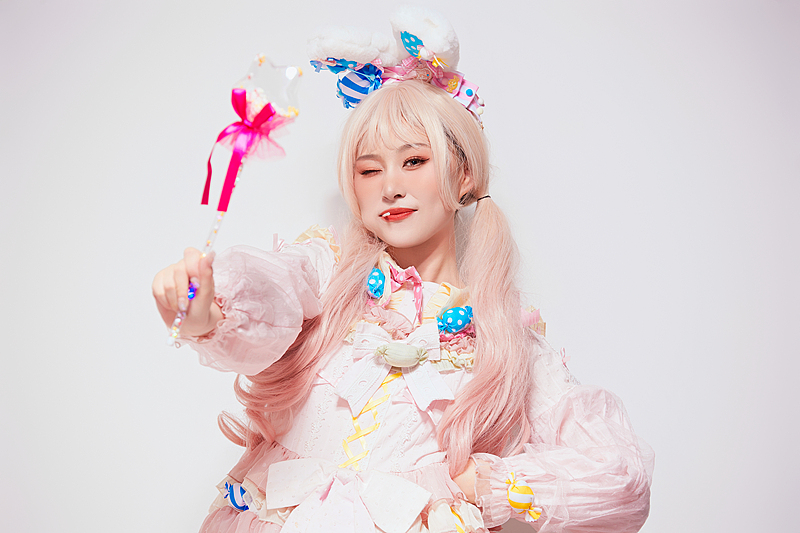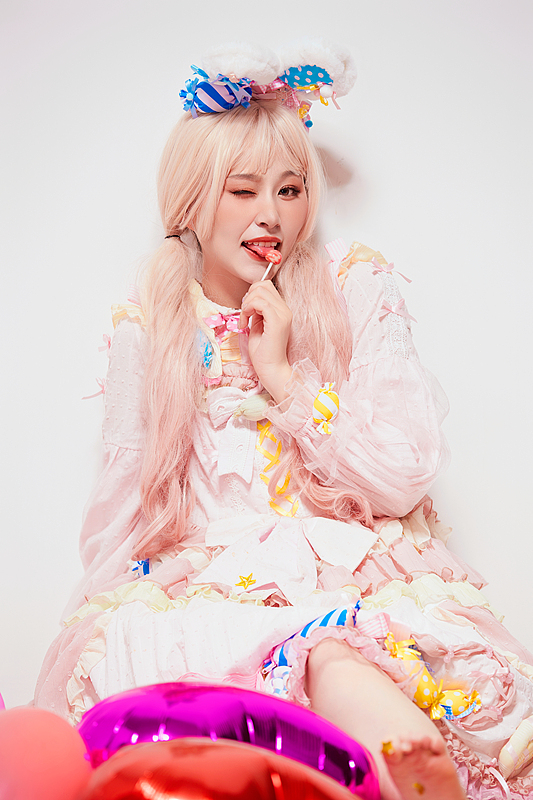 粉白相间的糖果主题洛丽塔裙,缀满了软萌的糖果装饰,搭配双马尾粉发与兔耳发饰,瞬间化身童话里的甜系少女。彩色气球环绕,捧着奶油蛋糕,咬着棒棒糖,每一个瞬间都甜到心巴上。软乎乎的氛围、灵动的表情,把生日的快乐与少女的甜意,都定格在了镜头里,这就是属于甜妹的专属浪漫呀~