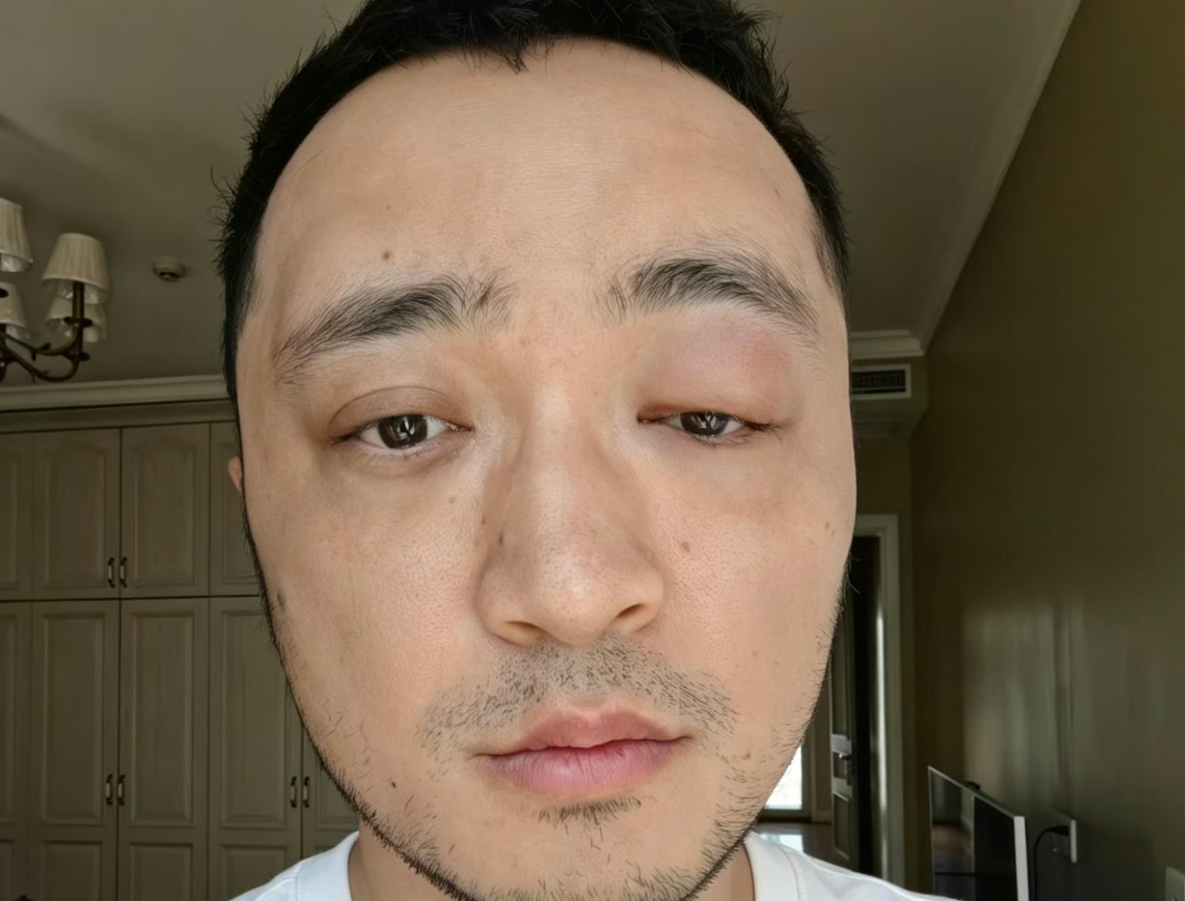 近日,央视主持人尼格买提的一条微博,意外带火了“染发安全”这个话题。他在社交平台上晒出一张旧照,照片里的他单侧眼睛肿得特别厉害,明显变成了“大小眼”,双眼皮都被肿胀的眼皮撑得变了形,模样和平时镜头前精神干练的样子反差很大。