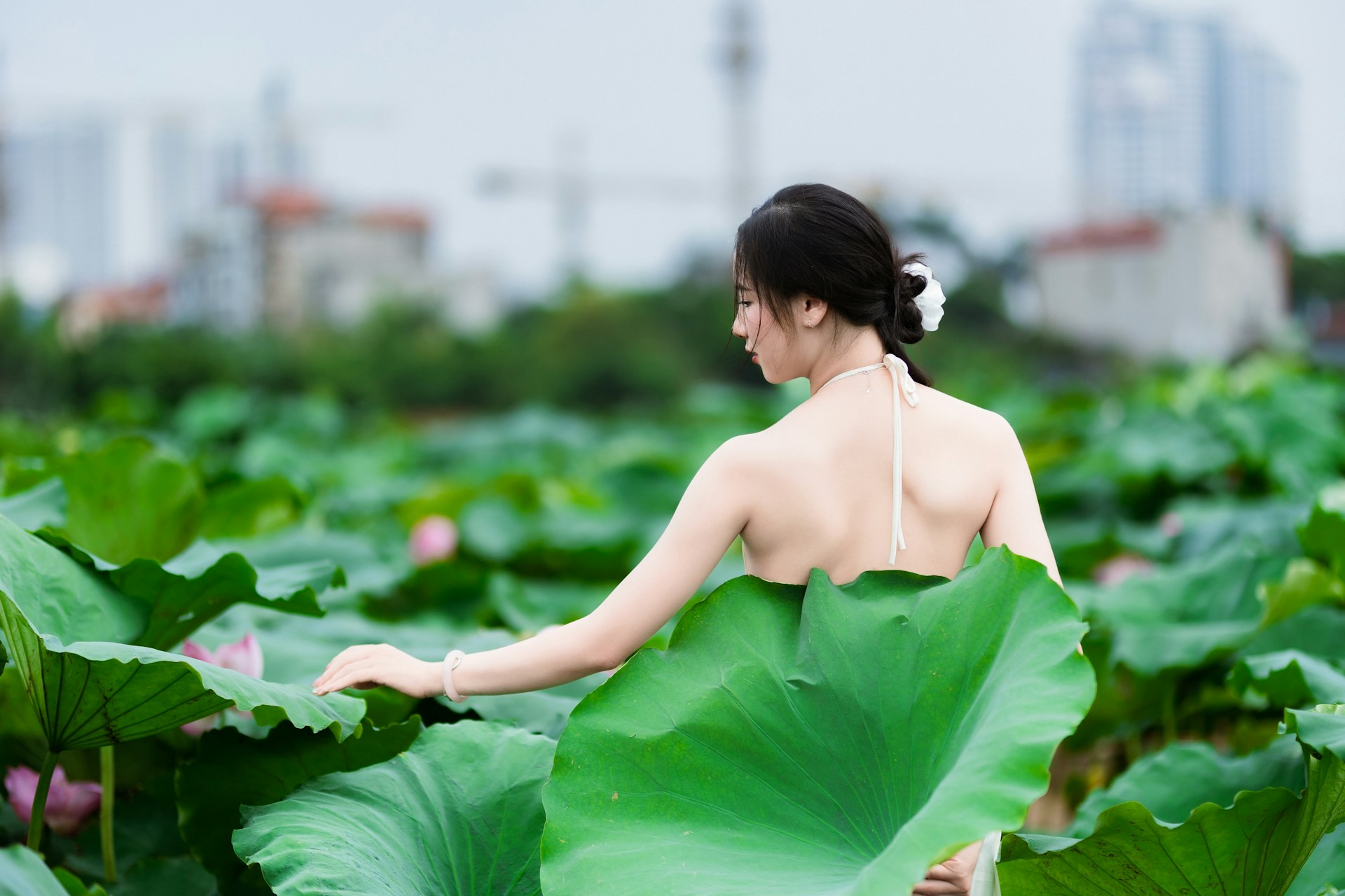 素衣与碧荷相映,温柔与夏意相融🌸。不必奔赴远方,这一方荷塘天地,就藏着夏日最动人的温柔,把满心惬意,定格在荷叶田田的时光里。