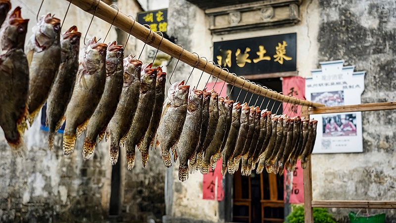 初见时的 “怪异”,入口后的惊艳,正是毛豆腐最迷人的反差,也让更多人顺着这一块发酵的豆腐,走进了完整而厚重的徽州风味世界。皖南多山多雨、常年湿润,为微生物生长提供了绝佳温床。徽州先民无意之中,让普通豆腐长出一层细密白毛,经油煎后菌丝褪去,外皮焦脆金黄,内里绵软如酪。闻之有淡淡发酵气息,入口却是醇厚脂香,咸鲜回甘,完美拿捏了臭与香的极致平衡。这不仅是一道小吃,更是徽州人与潮湿气候共处、化寻常食材为奇味的生存智慧。 毛豆腐:经自然发酵长出白毛,煎后外焦里嫩,臭香交织,是徽州人利用潮湿气候驯化微生物的经典小吃。 一块小小的毛豆腐,不仅是街头小吃,更是打开徽州饮食山河的钥匙。它承载着一方水土的物候、徽商的坚韧与徽州人的达观,也让这份古老的东方风味,在今日依旧香气绵长。 热油滋滋作响,毛豆腐在铁锅中被煎得金黄焦脆,原本蓬松的白毛遇热收缩,凝出一层琥珀色的脆壳。红亮的辣酱被油香烘得更具侵略性,葱花的鲜爽香气也随之升腾。筷子轻戳,外皮裂开的瞬间,内里像嫩酪般软绵的豆腐心便露了出来。入口先是辣酱的鲜辣与外皮的焦香,再是发酵豆腐独有的醇厚脂香,绵密软嫩的口感在舌尖化开,咸鲜微臭的余韵里藏着豆制品的回甘,层次丰富,一口就懂了徽州人为何对这一口念念不忘。 古徽州八山一水一分田,山高路远,鲜鱼难得。古时徽商远行,为让鱼肉耐住长途跋涉,便以淡盐腌渍,途中反复翻动。待运至山中,鱼肉微臭、鱼鳃泛红,看似变质,实则风味已悄然转化。经烹制后,异香散尽,肉质紧实弹嫩,咸鲜醇厚,越煮越香。臭鳜鱼的诞生,是徽商与时间赛跑的变通,是绝境里催生出的极致美味,也成了徽菜中最具辨识度的代表。 古徽州八山一水一分田,山高路远,鲜鱼难得。古时徽商远行,为让鱼肉耐住长途跋涉,便以淡盐腌渍,途中反复翻动。待运至山中,鱼肉微臭、鱼鳃泛红,看似变质,实则风味已悄然转化。经烹制后,异香散尽,肉质紧实弹嫩,咸鲜醇厚,越煮越香。臭鳜鱼的诞生,是徽商与时间赛跑的变通,是绝境里催生出的极致美味,也成了徽菜中最具辨识度的代表。 如果说臭鳜鱼是行路的智慧,刀板香便是安居的底气。每至腊月,徽州人家便开始腌制年猪,以盐与花椒反复揉搓,入缸腌半月,再经晾晒风干,把岁月的滋味慢慢锁进肉里。食用时切厚片,置于老杉或香樟刀板上蒸制,高温逼出丰腴油脂,肉香与淡淡木香交融渗透,咸香浓郁、肥而不腻。刀板香不急于求成,是冬藏春食的踏实,是晴耕雨织的安稳,一口下去,全是徽州人家细水长流的富足与温情。 如果说臭鳜鱼是行路的智慧,刀板香便是安居的底气。每至腊月,徽州人家便开始腌制年猪,以盐与花椒反复揉搓,入缸腌半月,再经晾晒风干,把岁月的滋味慢慢锁进肉里。食用时切厚片,置于老杉或香樟刀板上蒸制,高温逼出丰腴油脂,肉香与淡淡木香交融渗透,咸香浓郁、肥而不腻。刀板香不急于求成,是冬藏春食的踏实,是晴耕雨织的安稳,一口下去,全是徽州人家细水长流的富足与温情。 厚重之外,徽州风味亦有清鲜透亮的一面。黄山峻岭、新安碧水,孕育了无数山野珍馐,恰好中和了发酵与腊味的浓重。问政山笋壳薄肉嫩,带着晨露与山雾的清冽,与腊肉同炒,脆嫩清甜,一口解腻;石耳生于悬崖峭壁,采摘不易,与土鸡慢炖,汤色清亮,鲜中带醇,是徽州待客的最高礼遇。一咸一鲜、一重一清、一荤一素,让徽菜浓而不浊、厚而不腻,构成了完整又平衡的味觉体系。 从毛豆腐到臭鳜鱼,从刀板香到山间珍味,徽州美食从来不止于味道。它藏着一方水土的物候,藏着徽商远行的坚韧,藏着族人相聚的温情,更藏着先民顺应自然、物尽其用的生活哲学。一块长毛豆腐意外走红,而真正值得品味的,是背后一整个烟火缭绕、底蕴深厚的徽州。 打赏赞微海报分享 文章导航 大地为席,江河为觞|中国最美的五大「自然曲水流觞」 毛豆腐出圈:一口臭香,读懂徽州的烟火与山河