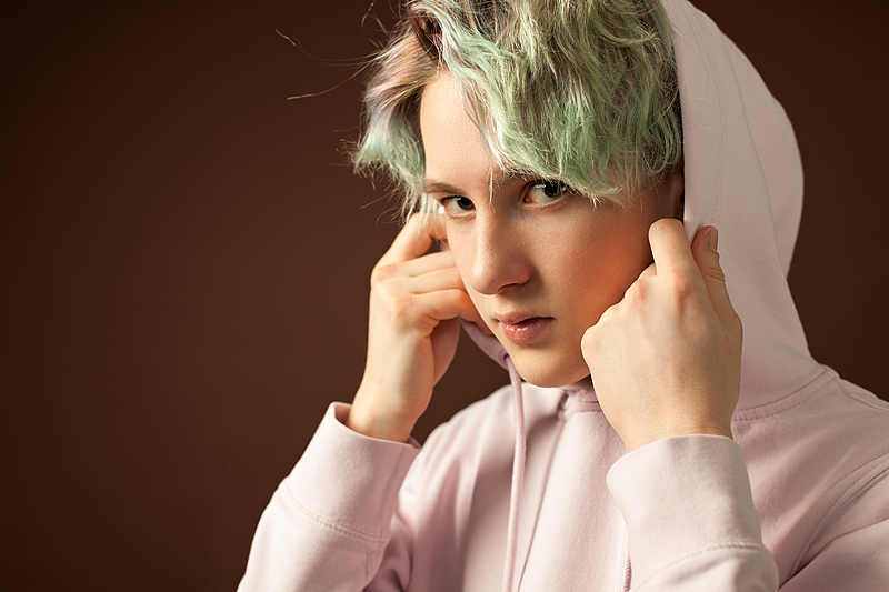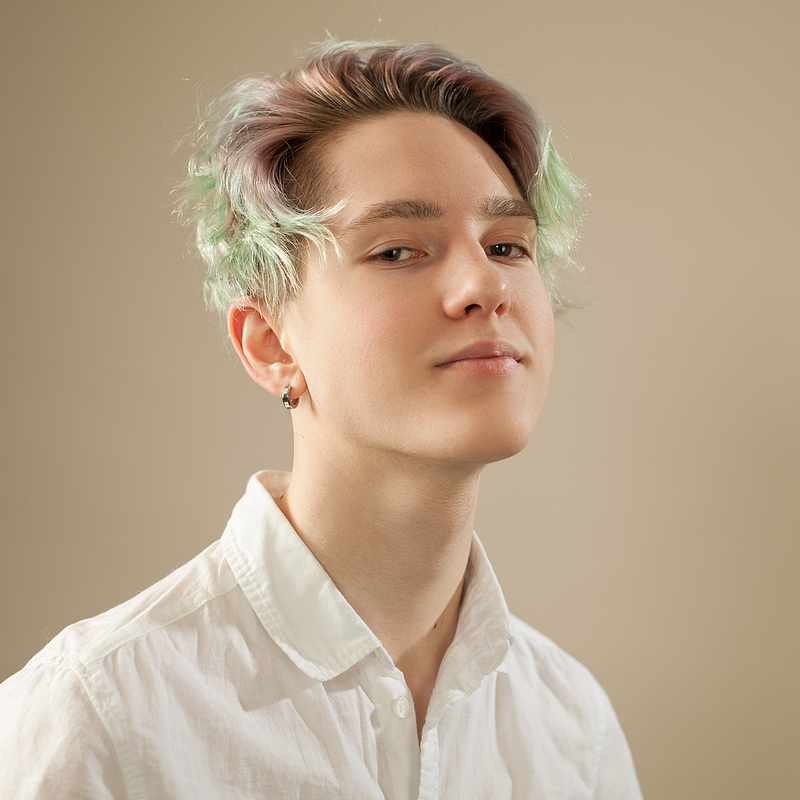 浅绿与粉紫交织的发丝,配上蓬松的纹理感,在镜头前显得又乖又叛逆。搭配干净的白衬衫,是清冷又温柔的少年感;换上软乎乎的粉色卫衣,又瞬间切换成奶酷甜系男孩,在不同背景的衬托下,眼神里的故事感直接拉满!