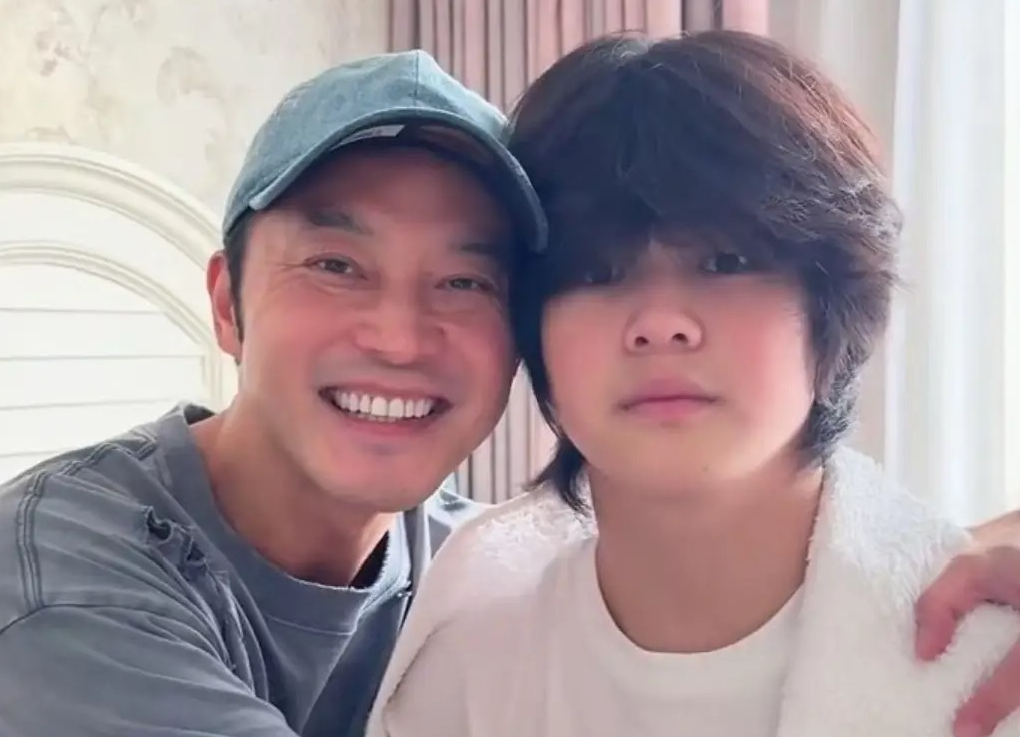 当天,14岁的安吉穿着迷彩长袖和黑色中裤,打扮得十分随性。最显眼的是他的身高,已经长到了1.8米,比父亲沙溢还要高,站在人群里格外突出,完全褪去了小时候的软萌,变成了挺拔的大男孩。