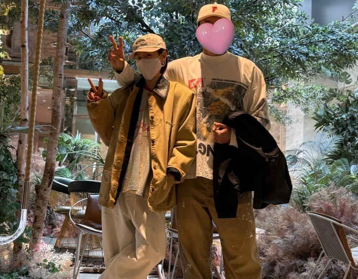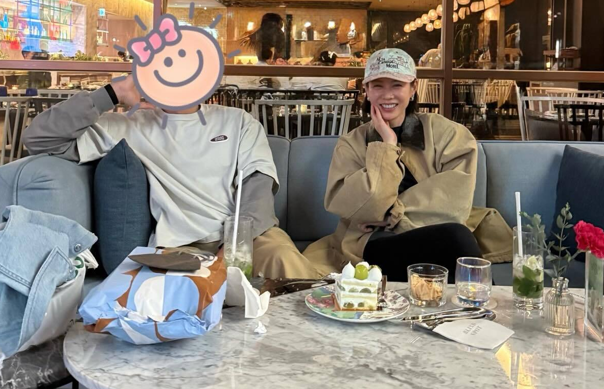 第二张则是两人站着拍的,一起比出可爱的V字手势,孙艺珍还自然地靠在玄彬的肩膀上,亲密又甜蜜。不过细心的网友发现,两张照片里,玄彬的脸都被爱心贴纸挡住了,这也延续了孙艺珍一直以来的“挡脸式晒照”风格。