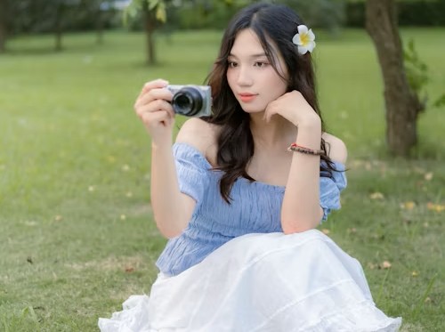 🌿青草的香气混着夏日的风,漫过整片绿油油的草坪。她坐在柔软的草地上,发间别着一朵清透的鸡蛋花,像把整个夏天的温柔都别在了发梢。淡蓝色的露肩上衣搭配蓬松的白裙,像揉碎了的蓝天和云朵,干净又清爽。手里举着相机,像是要把眼前的绿意、阳光和所有温柔的瞬间,都定格成永恒。🍃指尖轻托着脸颊,眼神里带着一点软乎乎的笑意,连风都慢了下来,悄悄掀起她的发梢。没有浓妆艳抹,没有刻意摆拍,这份自带的氧气感,就是夏天最动人的模样。📸镜头里装着风景,而她本身,就是这个夏天最治愈的风景。图片来源:Unsplash