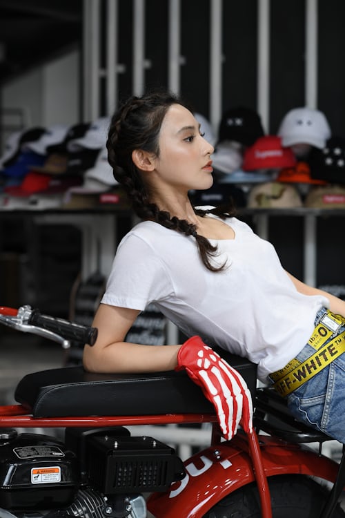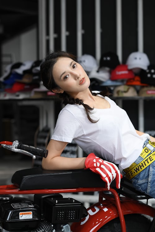 干净利落的白 T 搭配街头风牛仔裤,软乎乎的麻花辫却偏偏握上了拳击手套,自带 “不好惹” 的气场。背景里的潮牌元素和工业风布景,一下就把普通自拍的质感拉到了天花板,每一张都像是时尚大片里截出来的片段,甜妹和酷姐的风格居然能融合得这么自然。
