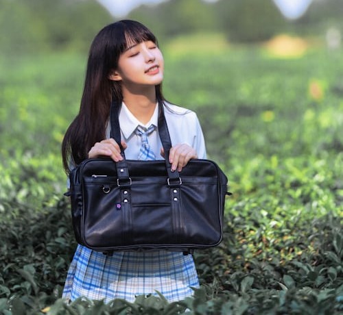 蓝格纹衬衫搭配干净的白裙,扎着俏皮的高马尾,一头钻进绿意盎然的草地间,瞬间解锁了专属少女的清新氛围感。