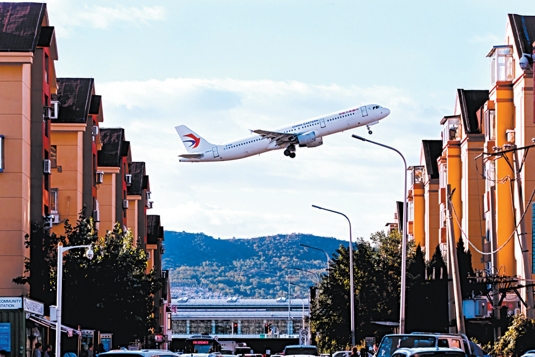同框 毛泽浩 摄点评:画面定格了飞机与城市建筑同框的瞬间,并呈上下呼应之势,飞机的清晰聚焦和明丽的色彩使其在简洁的天空背景下视觉凸显,地面元素则在不同结构的错落排布和大气透视下展现出了空间层次和节奏感。