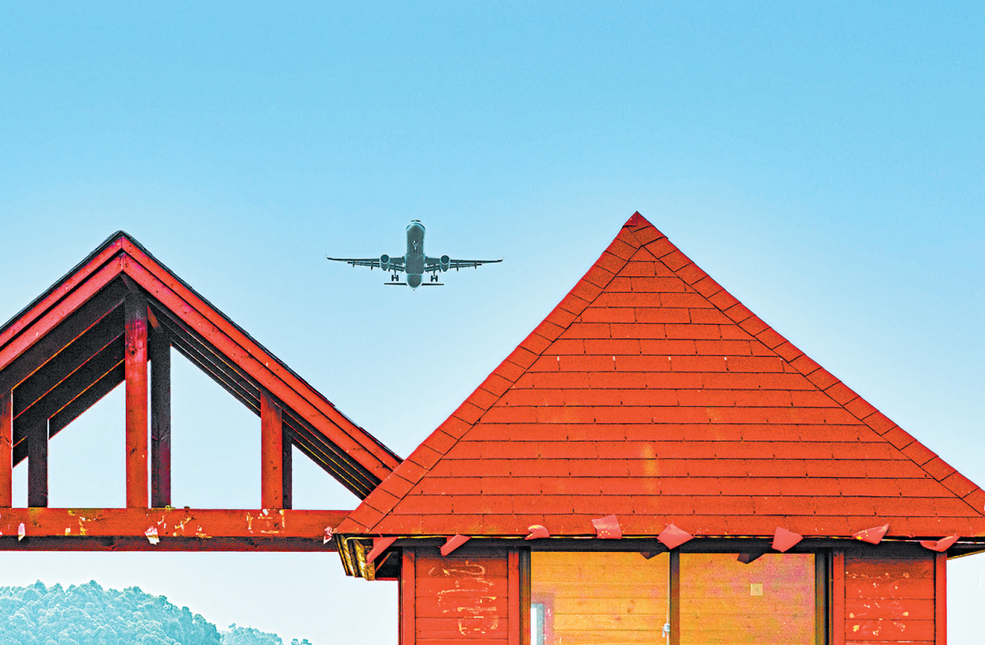 飞机掠过红房顶 梁晓琼 摄点评:作者善于选择和运用前景来营造空间氛围,凸显主题意境。木屋结构在画面中几乎占据了绝大部分面积,且色彩醒目,迎面飞来的飞机与木屋结构结合恰当,成为点睛之笔。