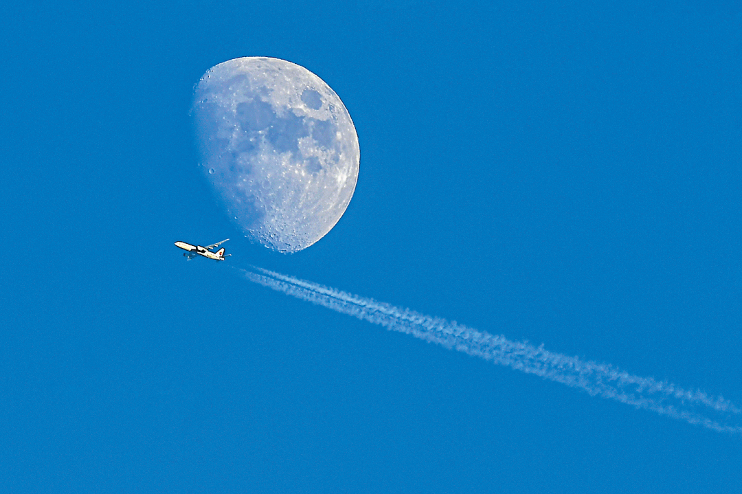 穿越 徐阳 摄点评:摄影师在画面中巧妙地将飞机与月亮结合一处,月亮表面的纹理可见,飞机则以点和线相结合的状态展现出飞行时的生动状态,同时将“穿越”主题以简约的画面元素作了生动呈现。