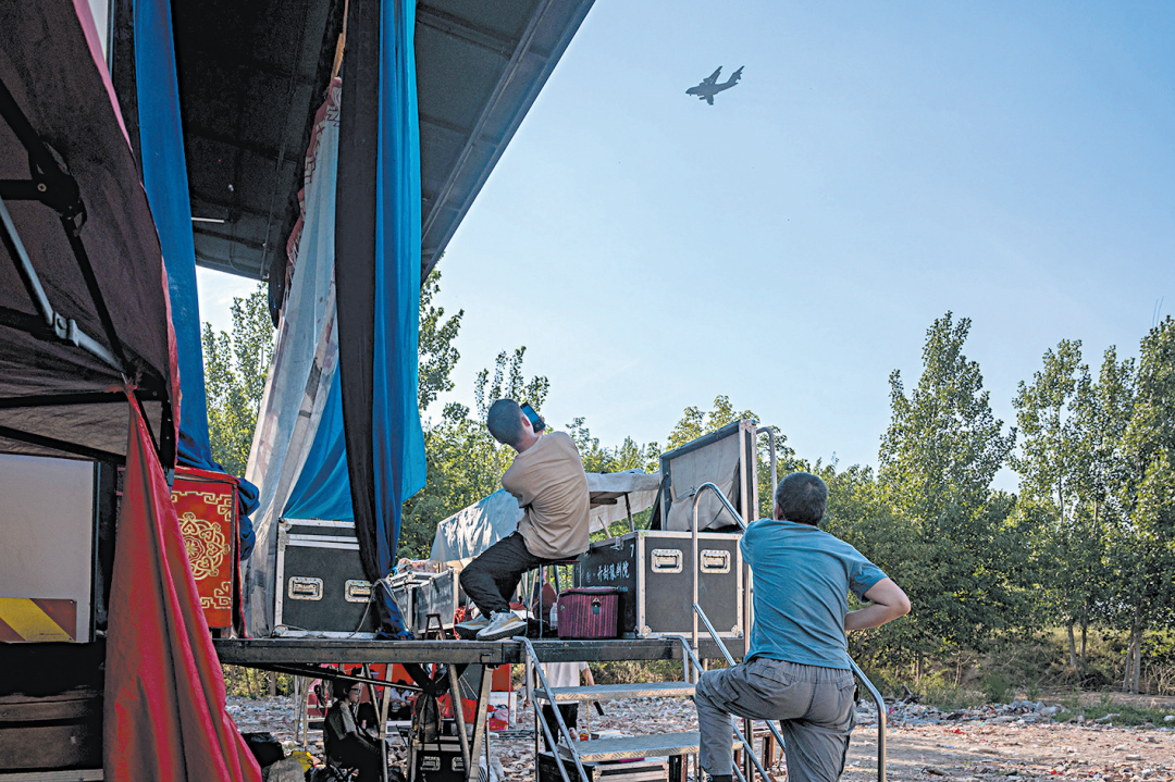 看飞机 朱林看 摄点评:将舞台场景和工作人物作为前景,营造画面的故事感,并将飞机构置于恰当的天空区域,以大小对比效果,以及人物对飞机关注情态的刻画,营造生动性,展现现场氛围。