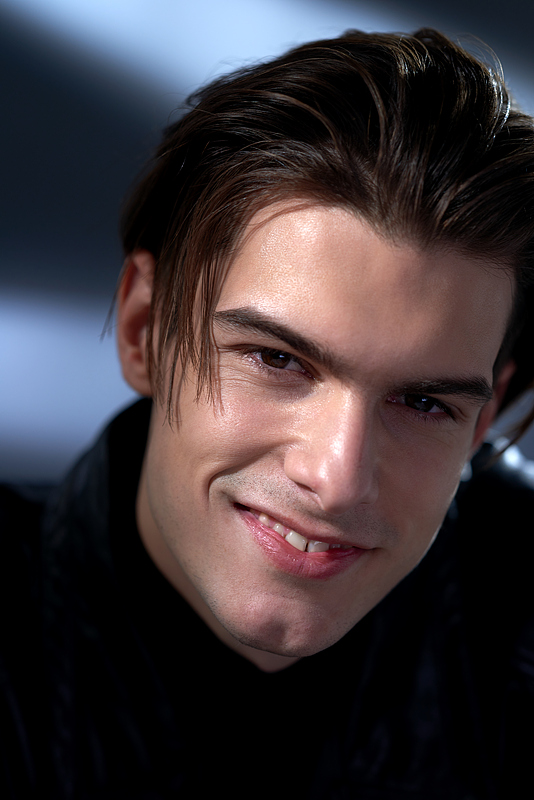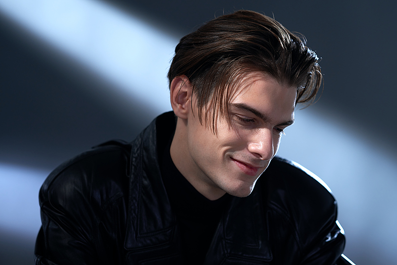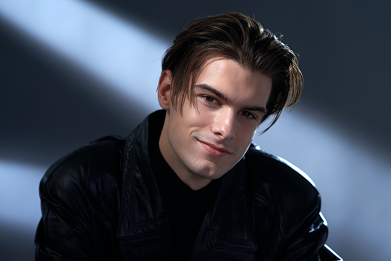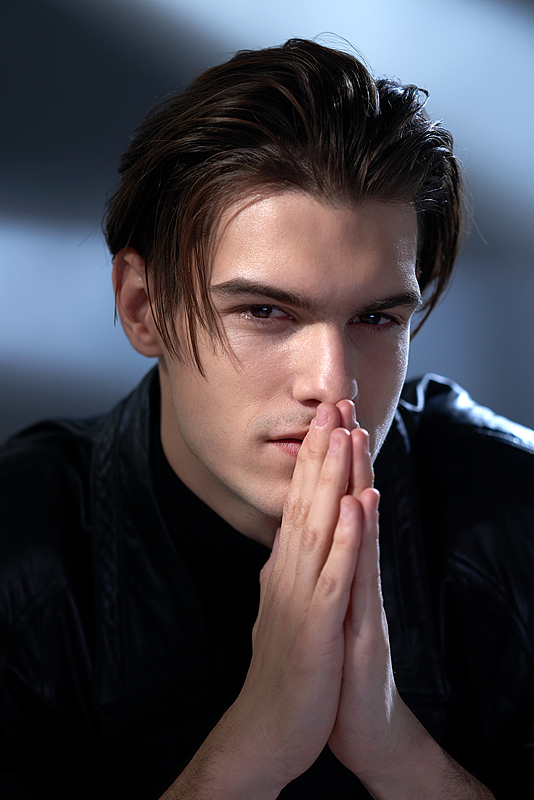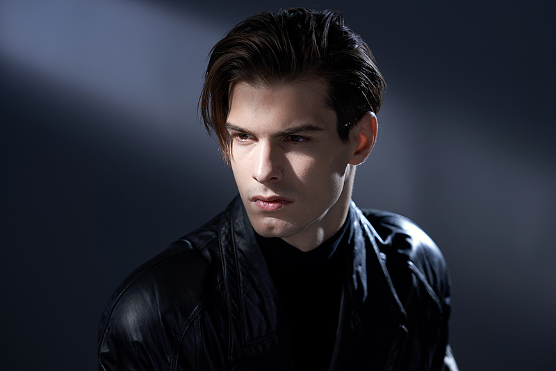 利落的侧分油头带着随性的碎发,搭配黑色皮衣与高领内搭,冷冽又性感。或低头浅笑,或抬眼直视,或慵懒抓发,每一个眼神和动作都充满故事感,在明暗交错的光影里,将酷帅与温柔平衡得恰到好处,像一部正在上演的时尚大片,张力十足又高级感拉满。